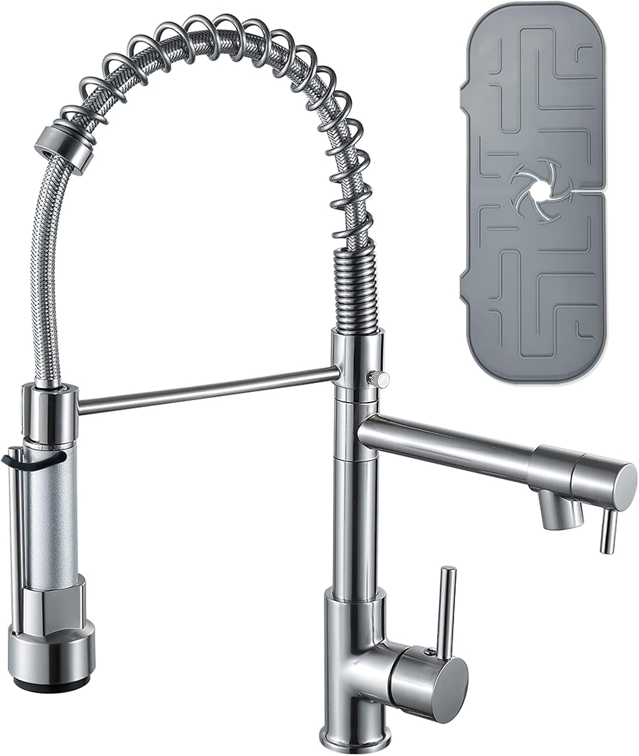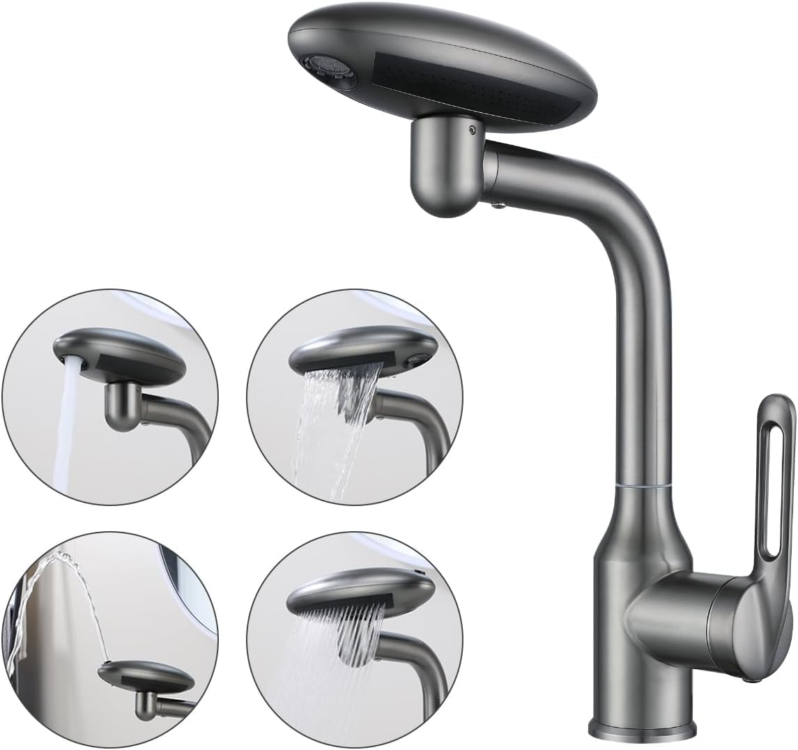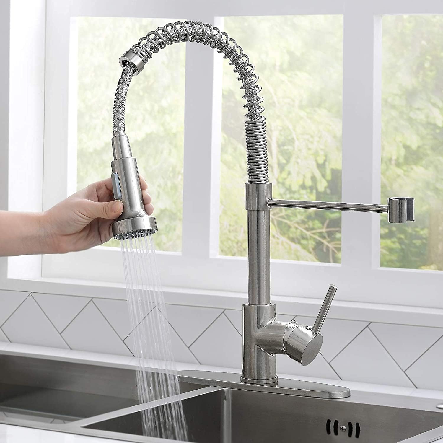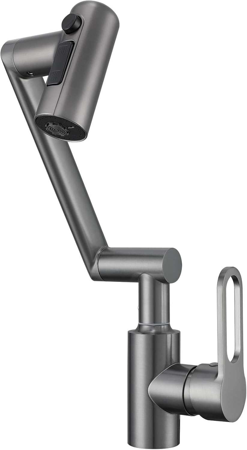 【360 °Swivel Sink Faucet】: The sturdy tap for kitchen sink replacement with 360°swivel design to adjust to allows the kitchen tap spray head water tap easily to clean every corner of the kitchen sink & clean plates, pots, bottle, fruit & vegetable etc. Also prevents high pressure water from splashing during using the sink.