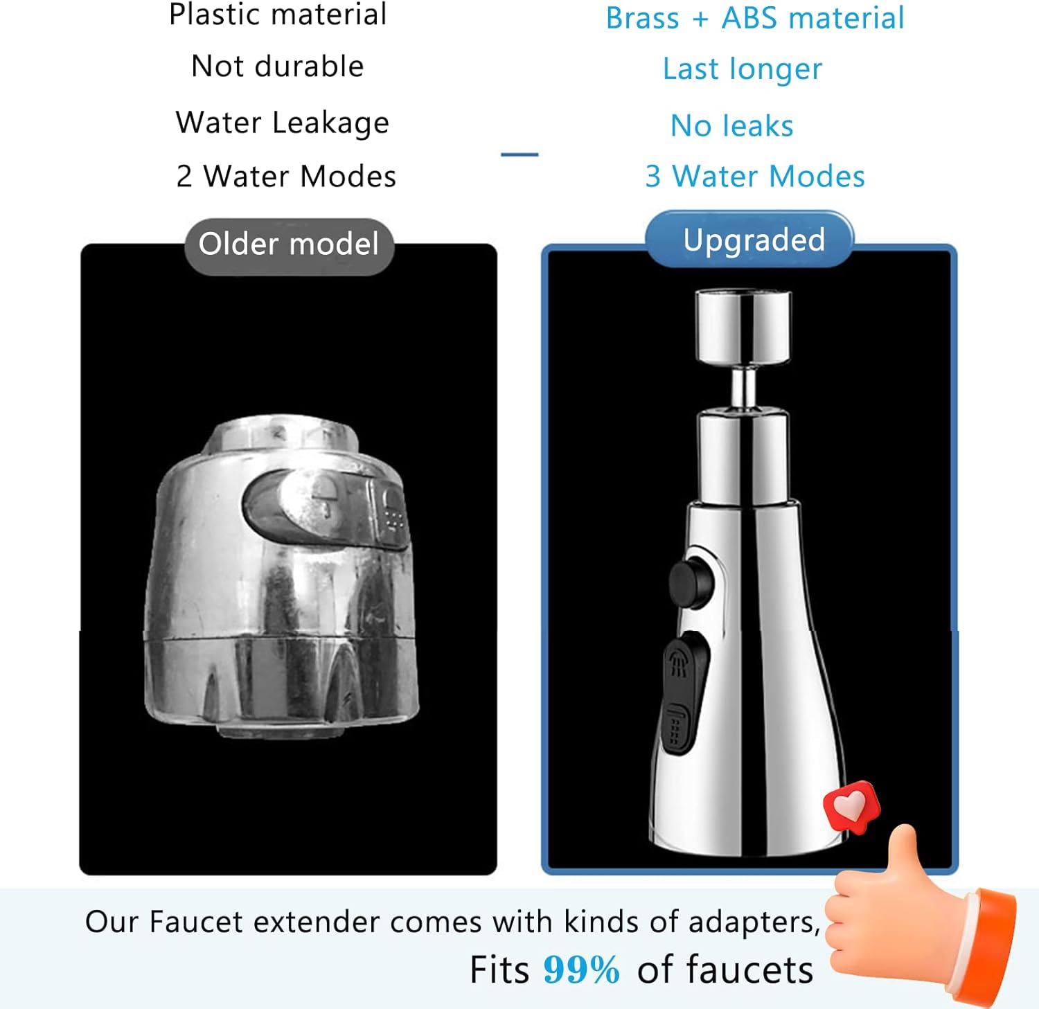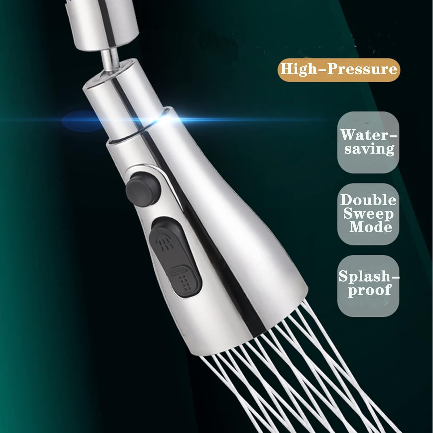 【3 Water-Saving Booster Faucet Extender】- This kitchen tap nozzle comes with 2 desperate button, 3 spray jet modes, rain shower jet with a gentle waist-water line, Strong Jet with double water-line, Normal Stream Jet with single waterline. Just press the sink faucet sprayer switch button,the kitchen tap aerator can switch to the mode you want. It can fully meet different needs of washing. Especially. the Strong Jet kitchen tap extension best for cleaning the bottle.