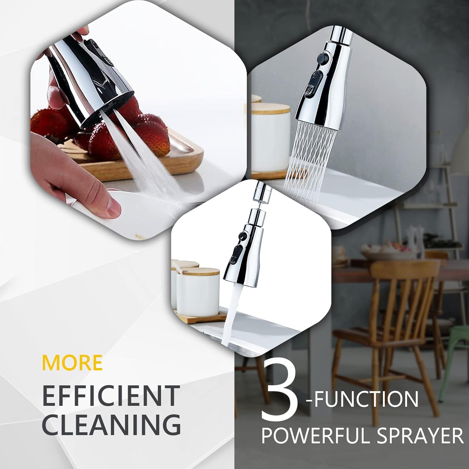【Fashionable & Durable Kitchen Tap Spray Head】: 360°swivel kitchen tap aerator is consists of the brass &kitchen faucet aerator with premium ABS material with explosion-proof & anti-freeze, shiny polished chrome to avoid rust & corrosion effectively which provides daily-life convenience for cleaning.