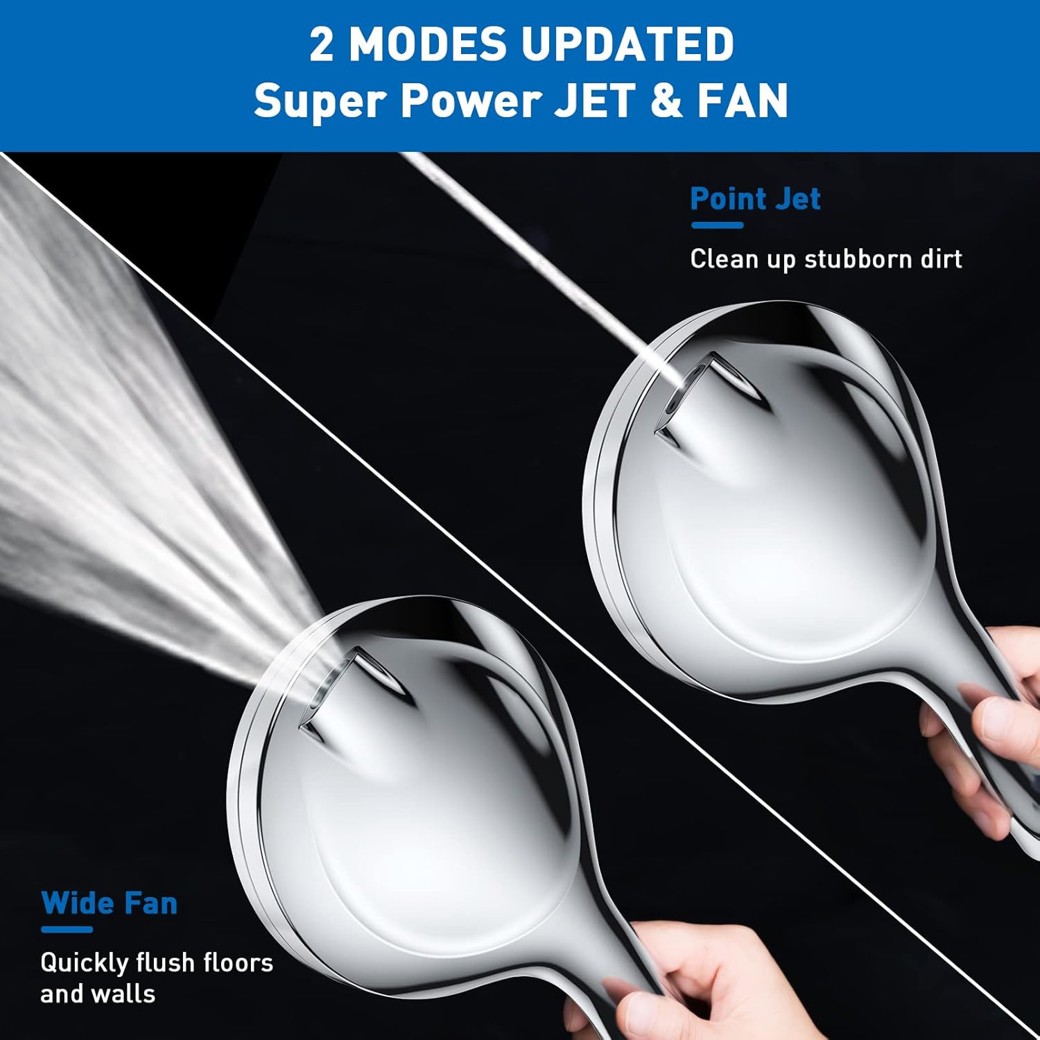 ✔【Super Power JET & FAN Wash Function】 Gcirik handheld shower head help you to easily get rid of stains and mud in the bathroom. JET: A concentrated water jet that quickly tackles stubborn stains in dead spots in the bathroom. FAN: Extensive cleaning, easy to remove foam and soap scum from walls and floors. Bathing your pet is even more convenient!