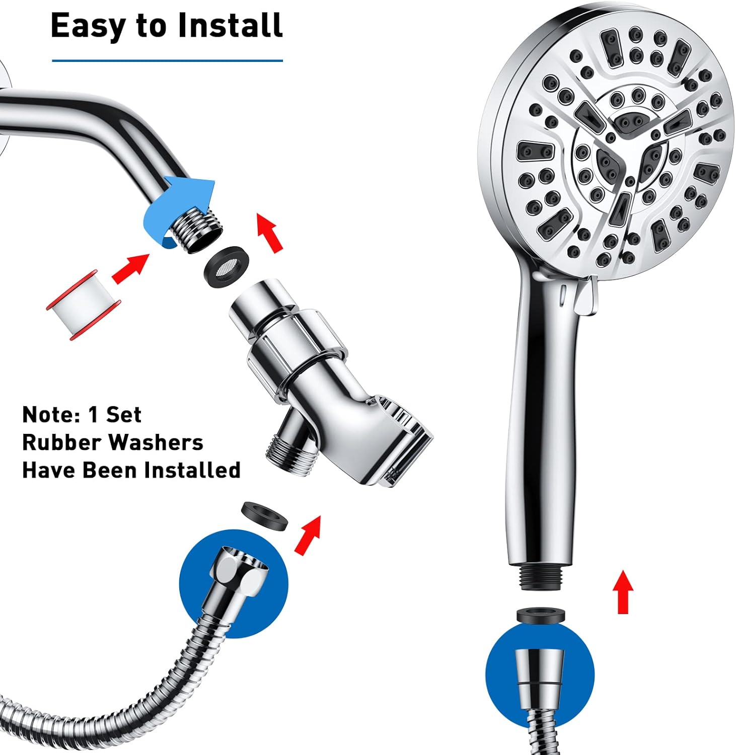 ✔【Easy Installation & Self-Cleaning Silicone Nozzles】 All accessories are completed, tool-free, according to the instructions to complete the installation in a few minutes Well-distributed self-cleaning silicone nozzles provide an even spray and prevent lime and hard water build-up. Easy to clean and prevent clogging.