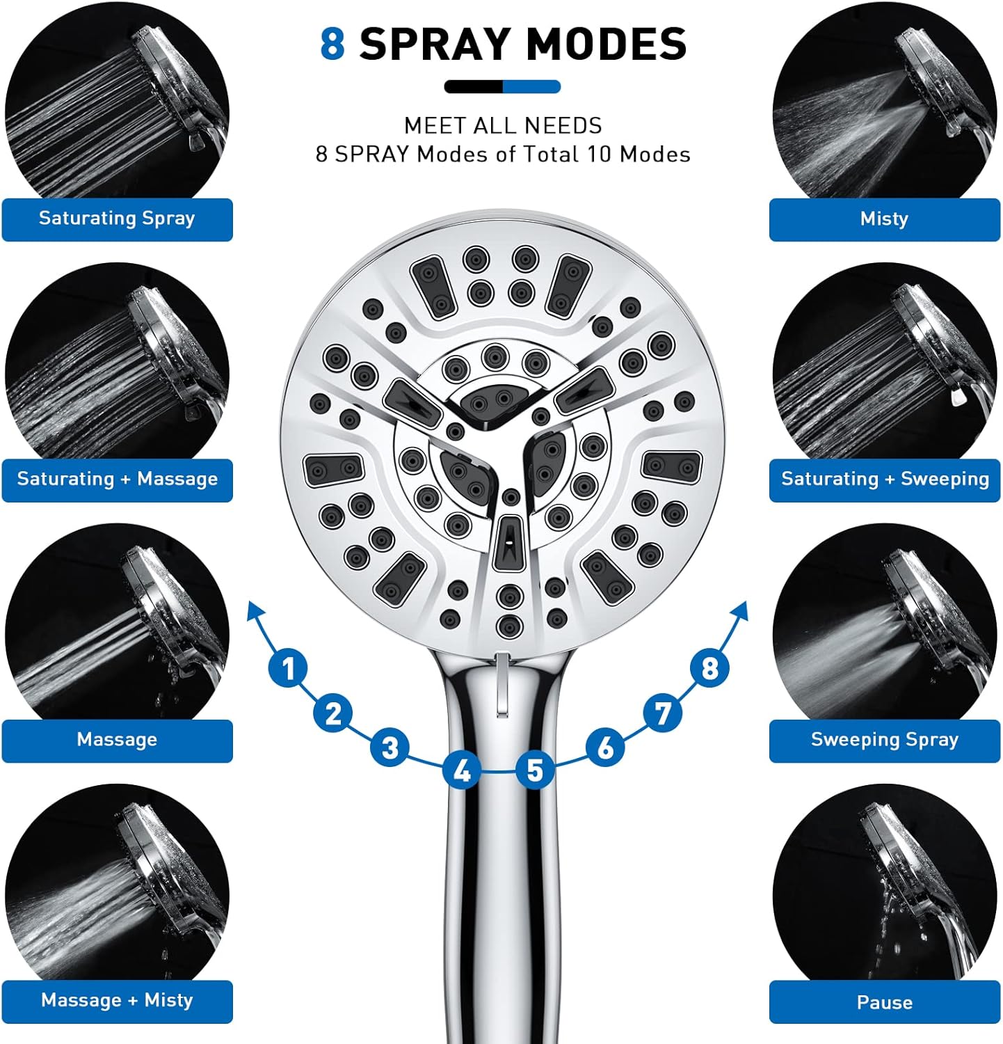 Gcirik High Pressure Shower Head with Handheld, 8 Spray Settings + 2 Power Jet Modes Shower Heads, 5.04" Detachable Showerhead Set with Stainless Steel Hose and Adjustable Bracket