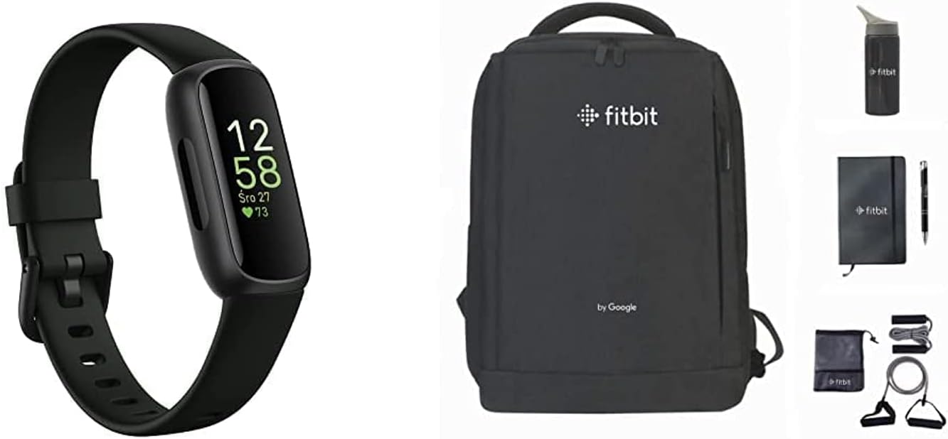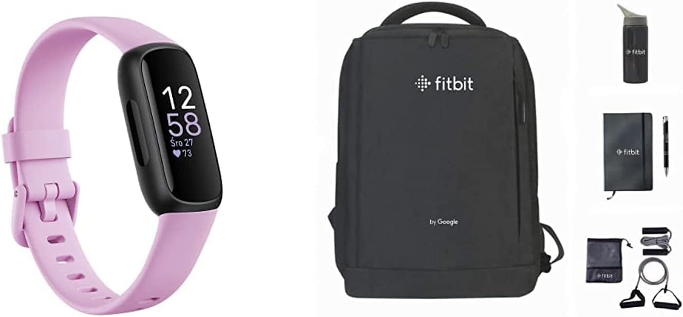 Included in box: Inspire 3 Tracker (Size Small and Large Straps included). Wrist straps measure small 140 mm–180 mm with additional Large 180 mm–220 mm. Charger also included (Compatible with Fitbit Luxe, not compatible with other models )