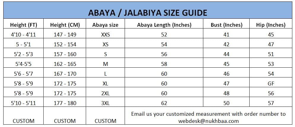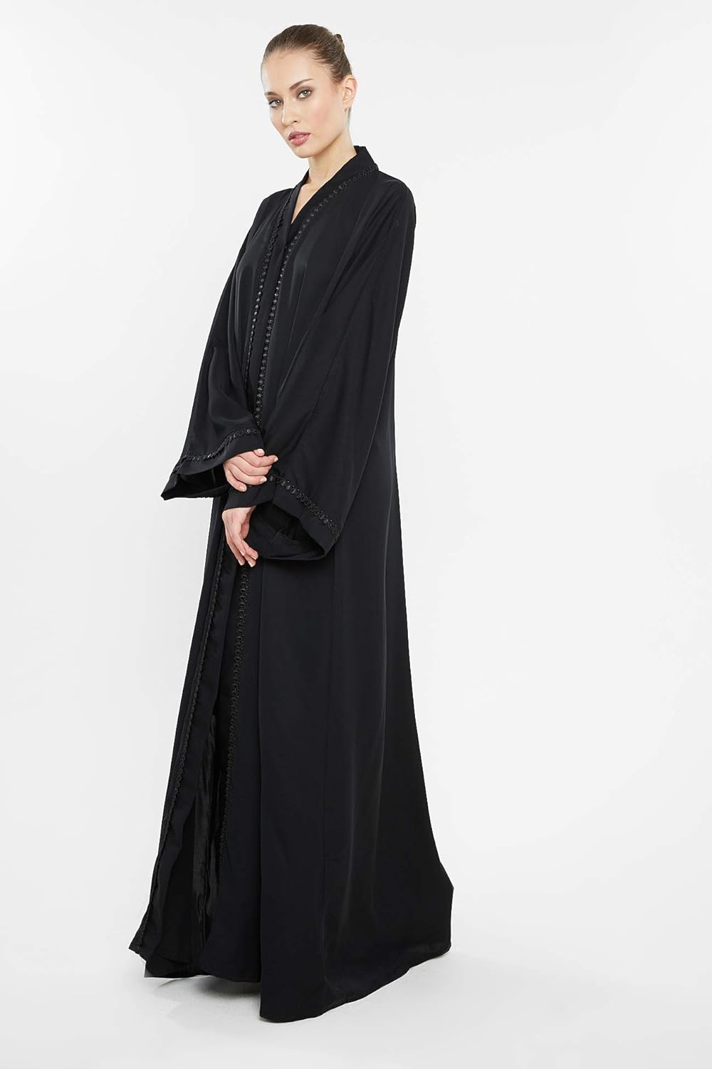 Abaya with intricate embroidery. Hijab included. Button Closure. The Abaya is made from soft and light weight material.