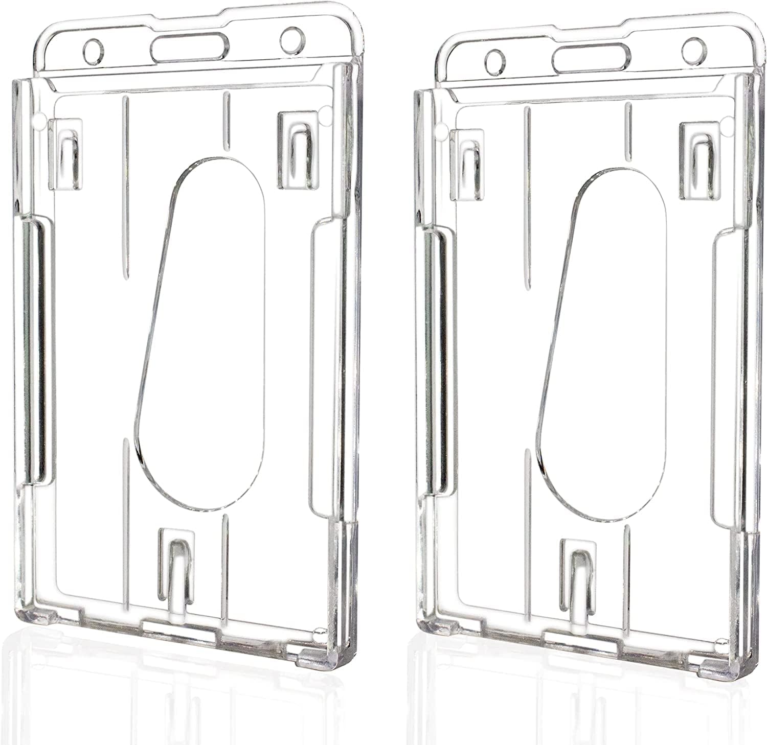 Odluzy Clear Vertical Hard Plastic ID Card Holder, Hard Plastic Badge Holder with Easy Access Thumb Slot & Chain Holes, ID Credit Card Protector, Pack of 2