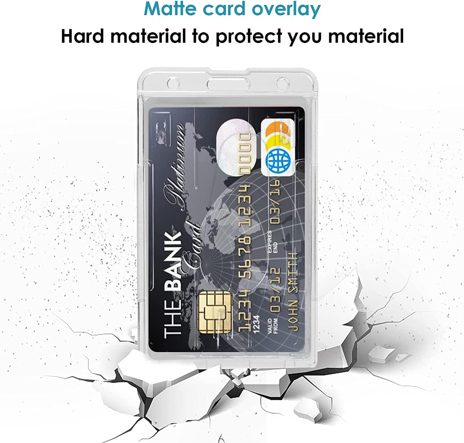 【Clear Badge Holder】2 pieces vertical ID badge protector, with rigid PC Transparent material not only for viewing clearly, but for preventing the card from bending or cracking.