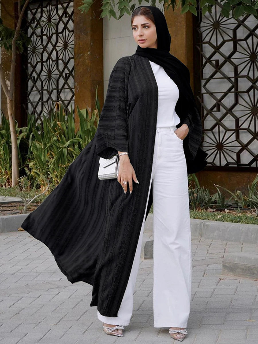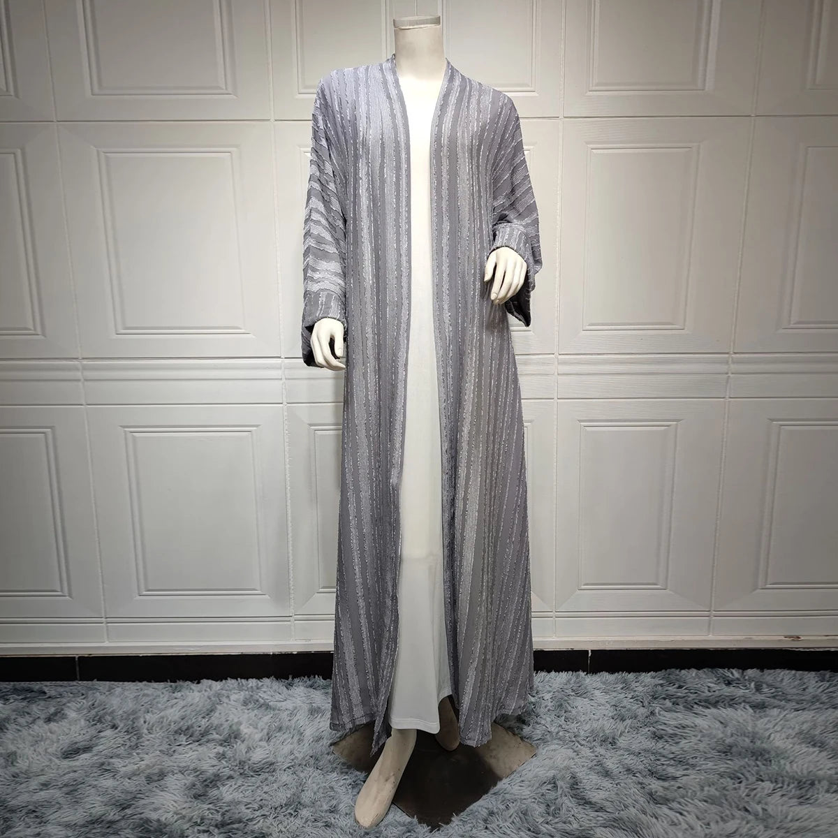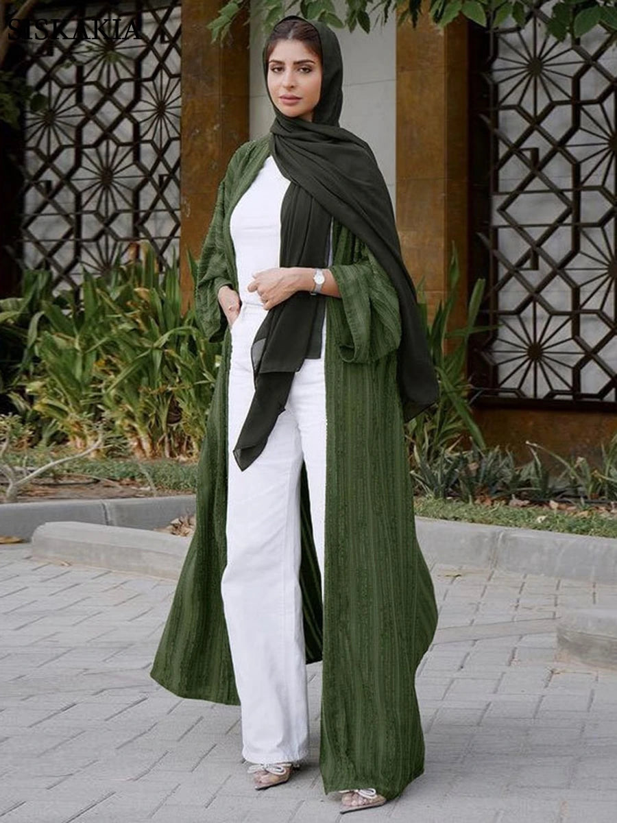 Siskakia Fashion Muslim Kimono Abaya Solid Striped Retro Ethnic Cardigan Robe Dubai Middle Eastern Saudi Arabia Eid Clothes 2022