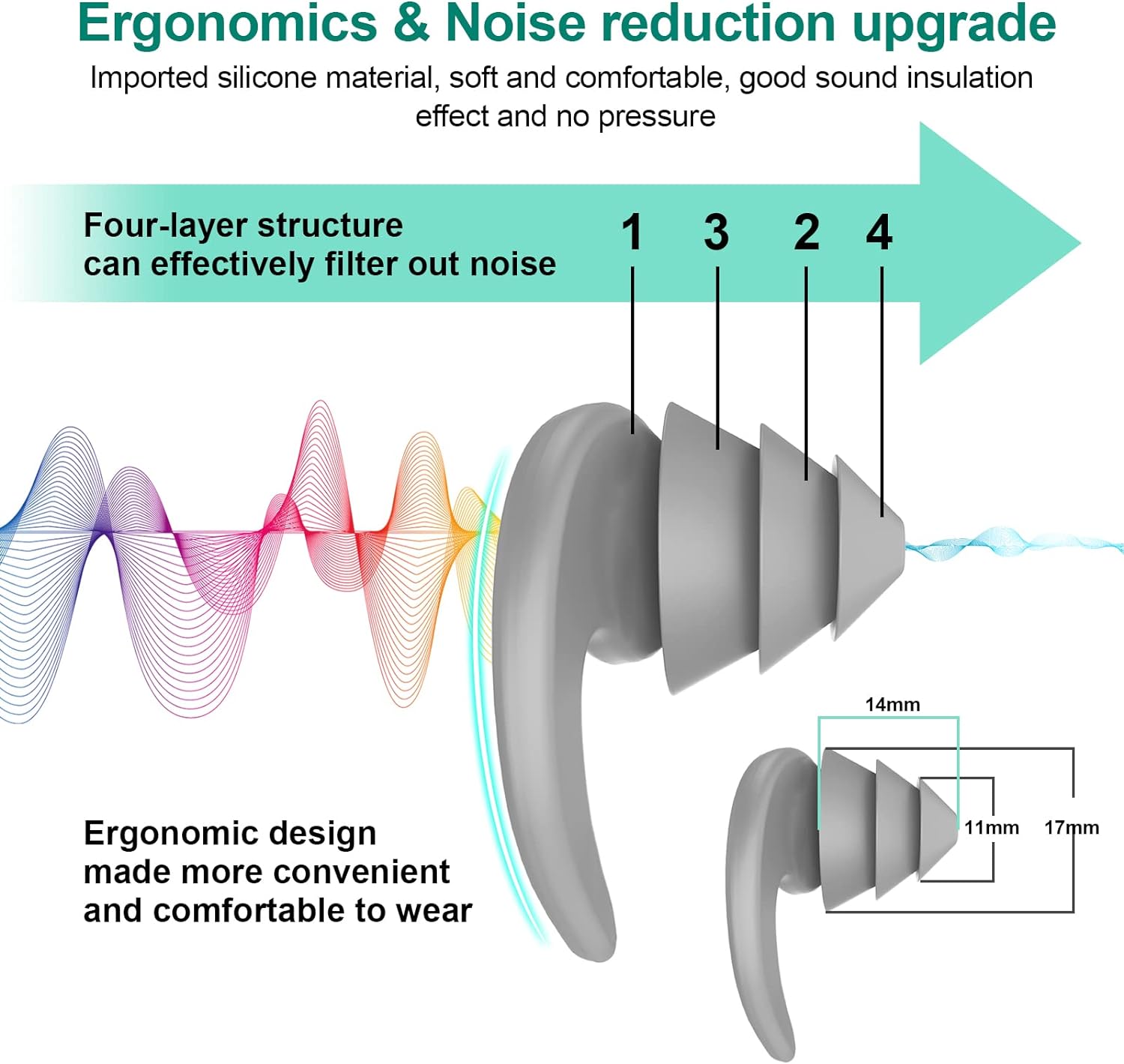 【Comfortable】Made of super soft silicon, it is comfortable and easy to wear. This lightweight silicone is contoured to provide a snug fit and minimize leakage and it doesn’t feel hard in your ear.