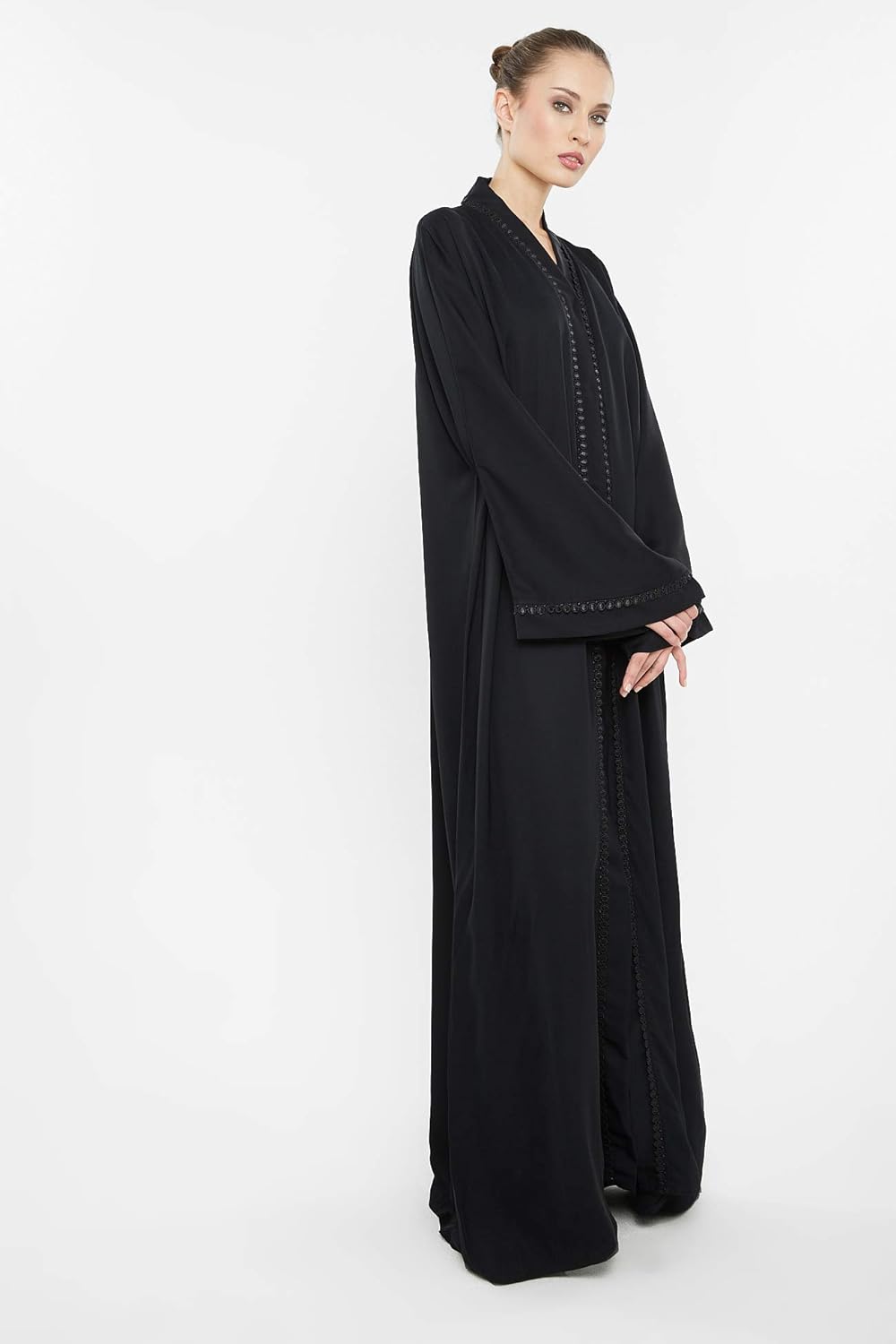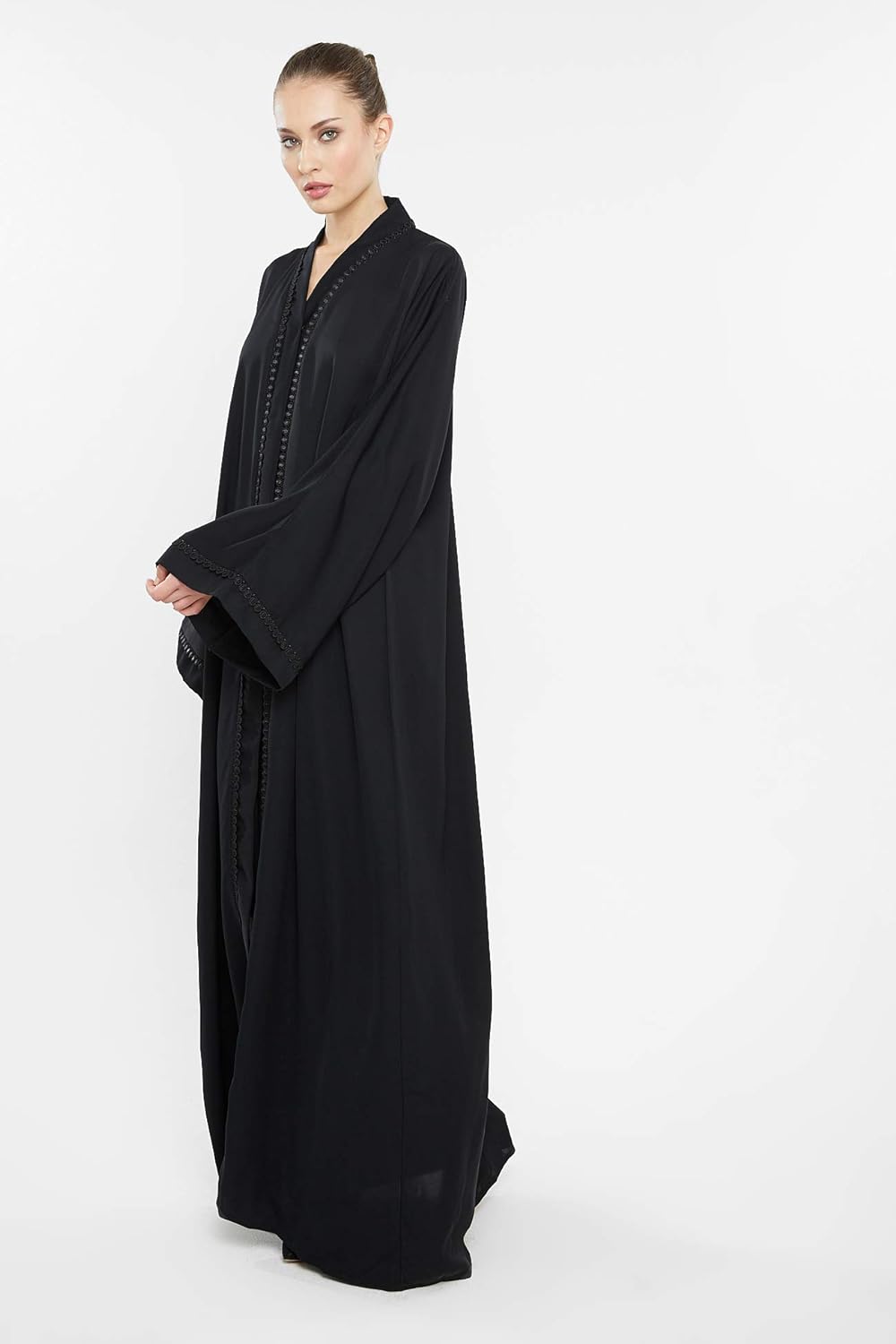 Abaya with intricate embroidery. Hijab included. Button Closure. The Abaya is made from soft and light weight material.