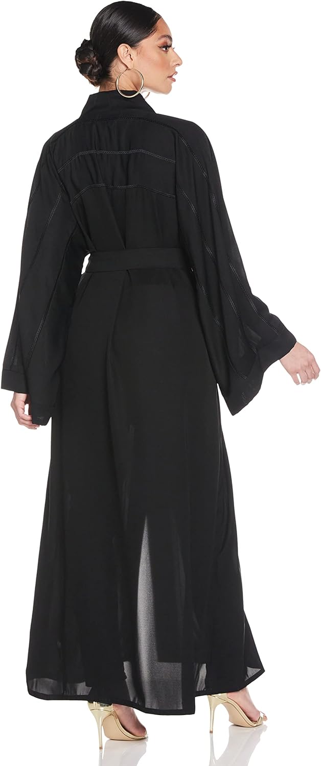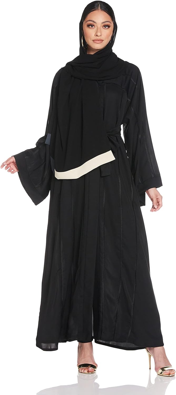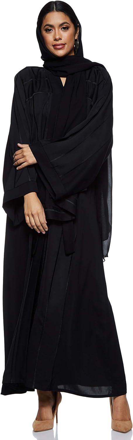 Abaya with intricate embroidery. Hijab included. Button Closure. The Abaya is made from soft and light weight material.