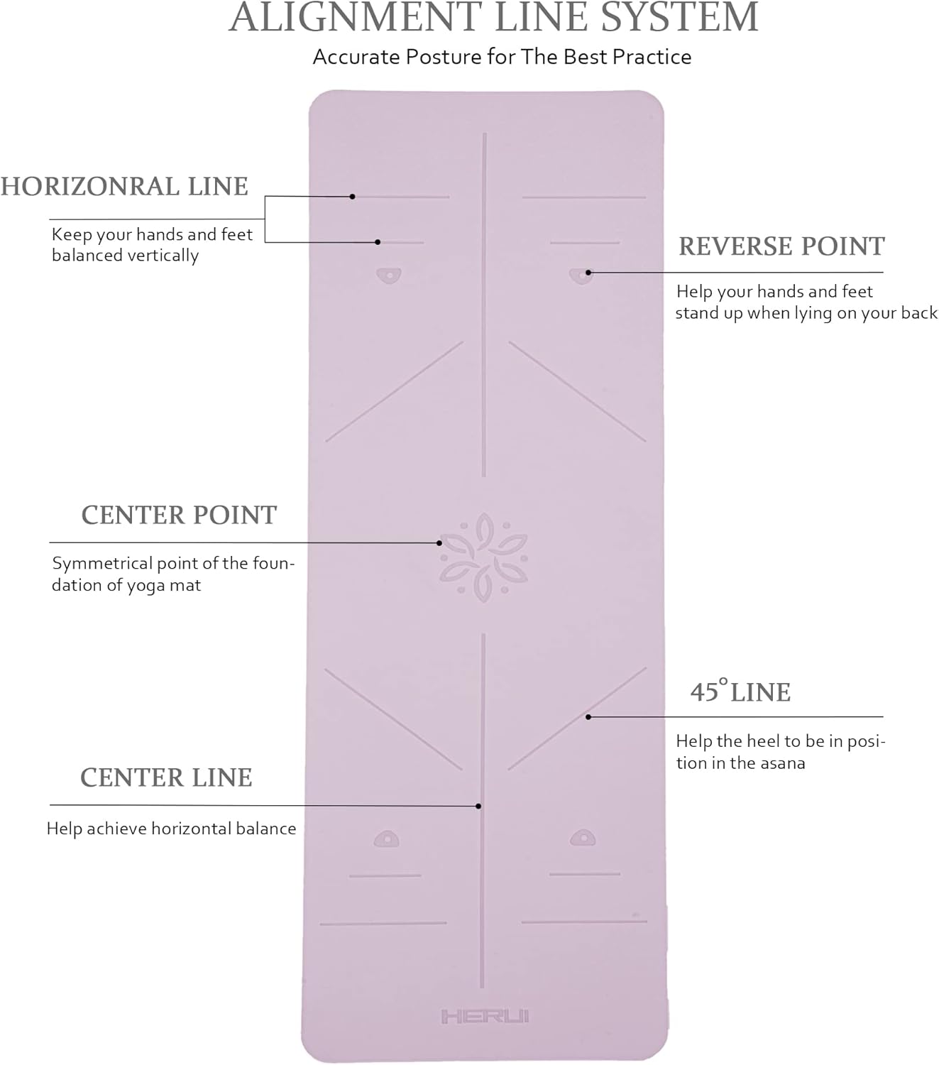 Achieve perfect posture with the Herui yoga mat with alignment marks design. These lines assist you in focusing on your exercise and adjusting the position of your arms and legs, allowing for a balanced and accurate posture.