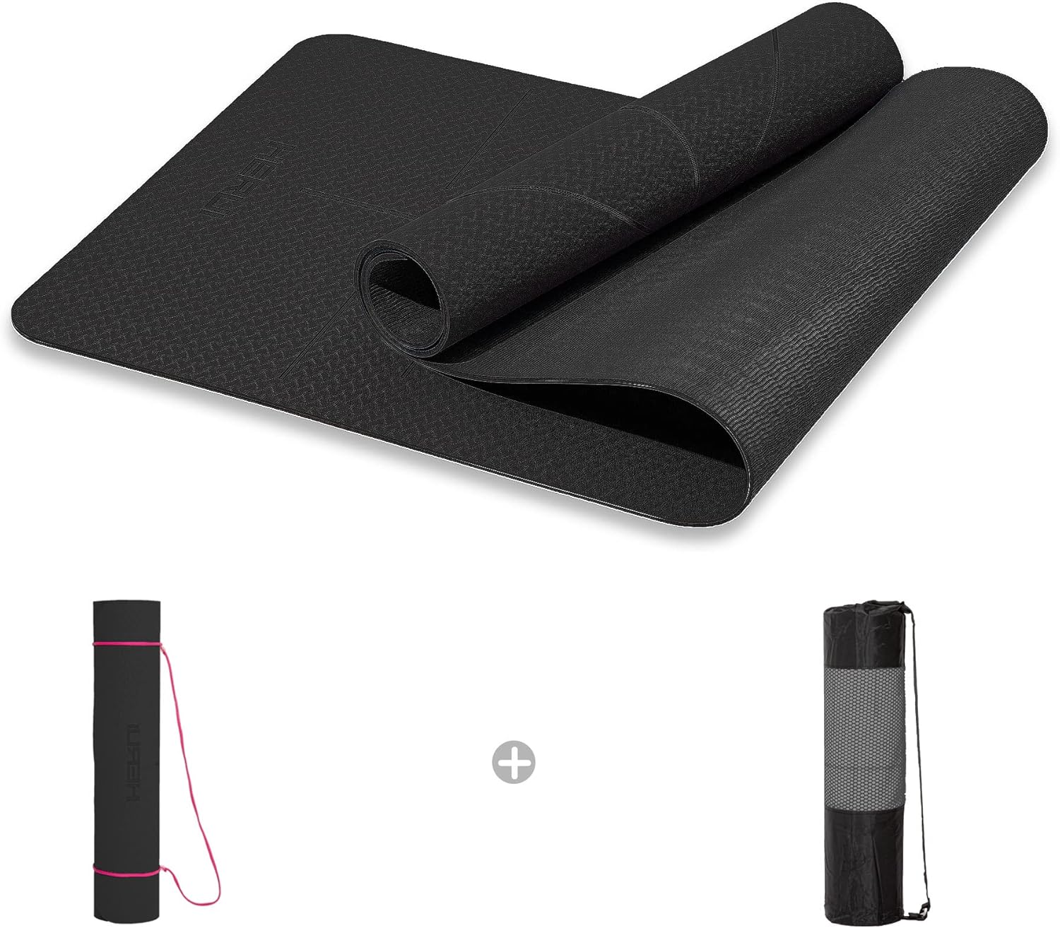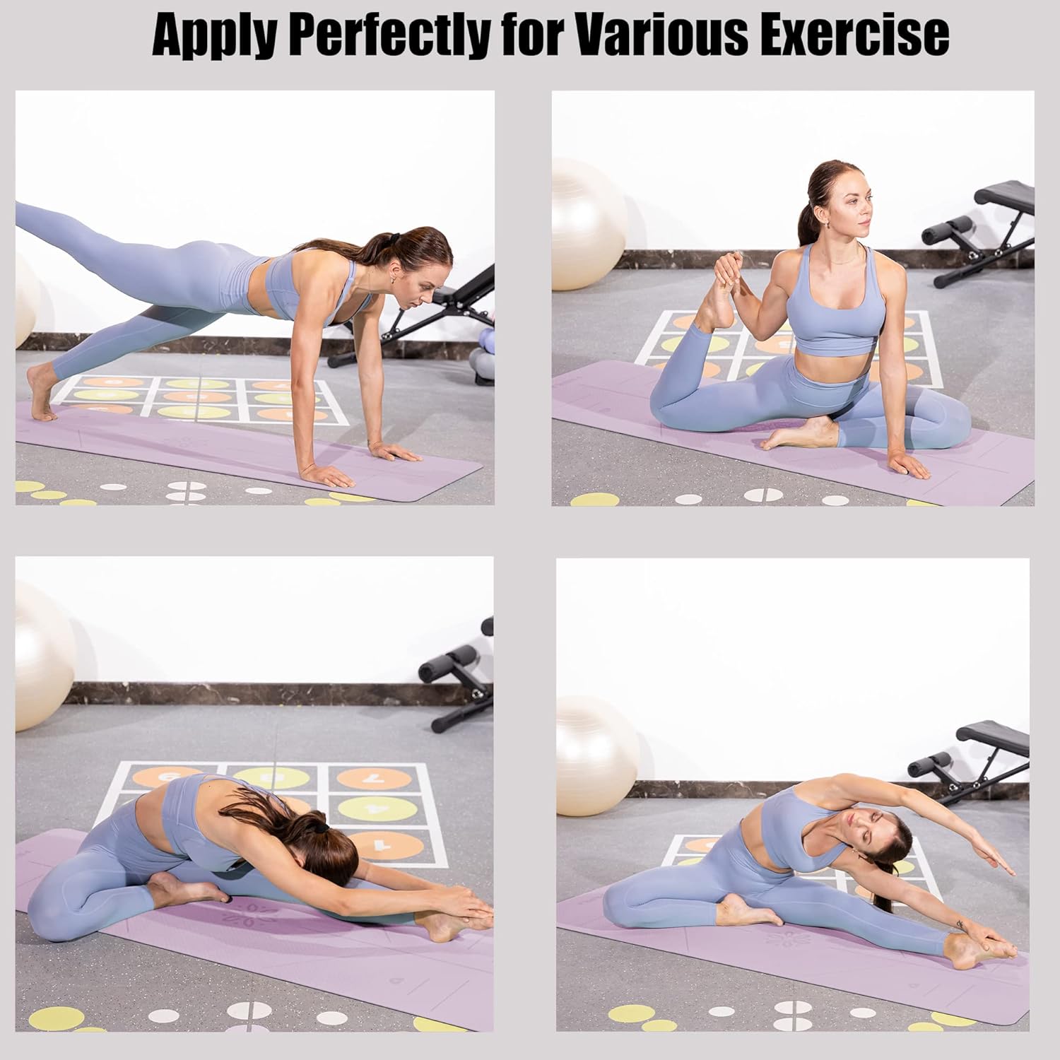 Yoga Mat Alignment Lines Anti-Slip Exercise Mat with Carrying Bag Fitness Mat for Pilates 183CM*61CM*6MM Thickness for Woman Man Beginners