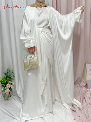 Ramadan Eid Fashion Puff Sleeve Loose Muslim Abayas Soft Robe Musulmane Abaya Elegant Silky Muslim Arab Worship Service Clothing