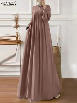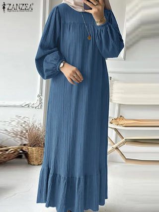 ZANZEA Women Long Sleeve Dress Fashion Autumn Dresses Elegant Muslim Long Dress Turkey Abaya Vestidos IsIamic Casual Party Robe