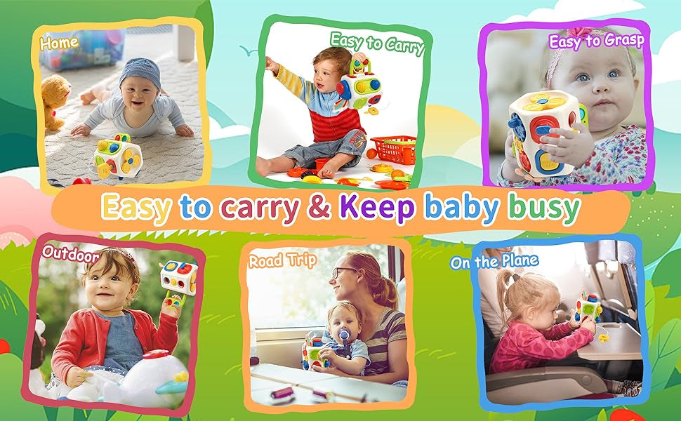 • 🎁【Ideal Baby Gifts】This activity cube is good looking, lightweight and portable toddlers toys. Ideal for toddler travel busy toys, fidgets toys for kids. Popular as stocking stuffers, Christmas gifts, newborn gifts, birthday gifts, Thanksgiving gifts, Easter gifts, travel toys, teaching aids etc.