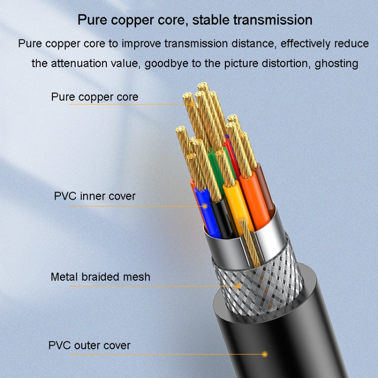 2. Pure copper wire core to improve transmission distance, stable transmission, effectively reduce the attenuation value, goodbye to the picture distortion, double image