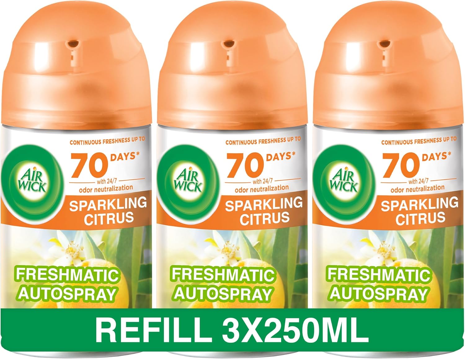 Air Wick Freshmatic Autospray Refill, Sparkling Citrus Fragrance, Eliminates Bad Odour like Cat Litter Smell, 250 ml (Pack of 3)