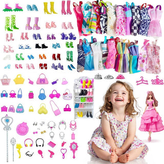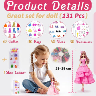 (131 Pcs) Doll Clothes Doll Barbie Accessories Dolls Set Barbie Doll Clothing Doll Closet Dolls Clothing & Accessories Sets Doll Jewelry Set Doll Shoes Barbie Clothes Doll Accessories Set for 28~29 cm