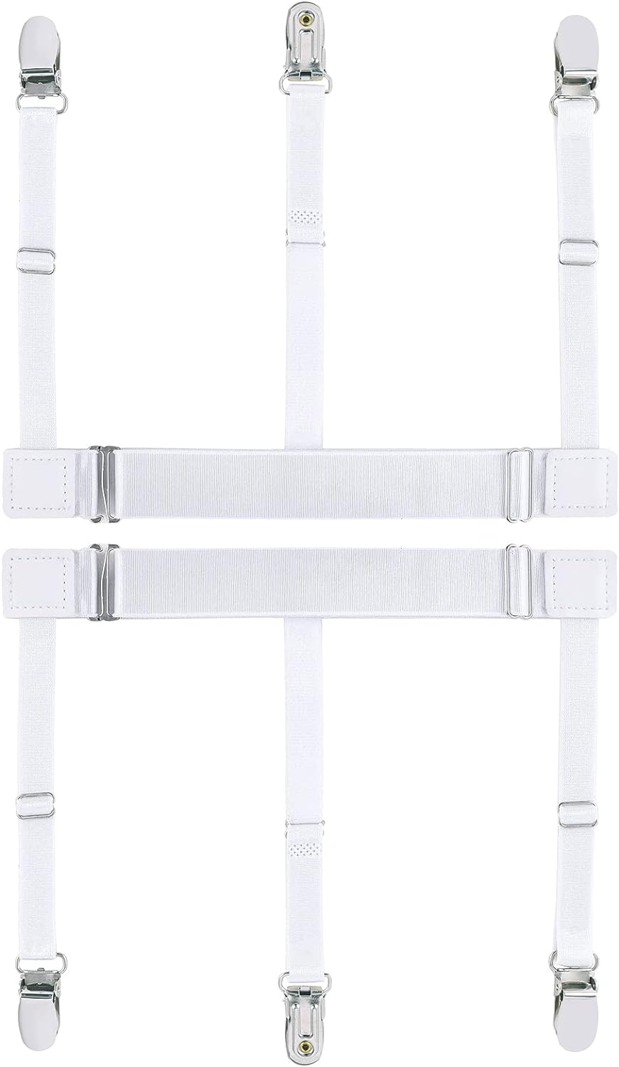 - Strong Shirt Stays Clips: Metal clips with teeth firmly grip your shirts all day without damaging them the elastic strap is long lasting. And our Shirt Stay is designed to be worn daily and withstand washing.