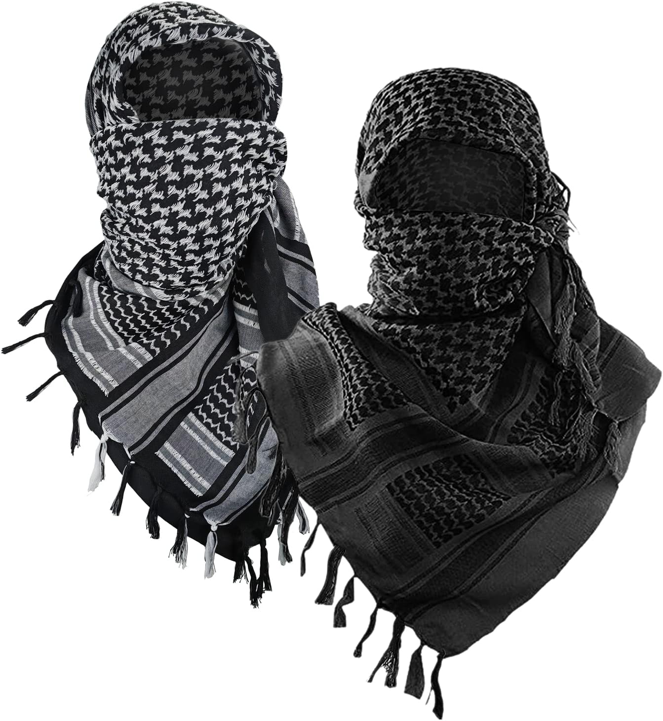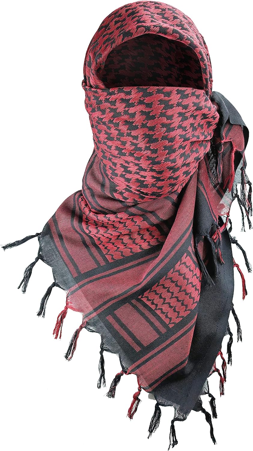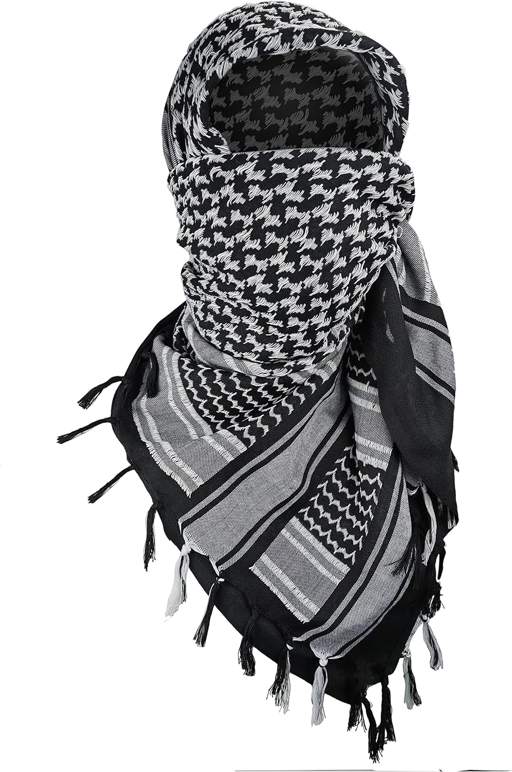 - APPROPRIATE SIZE: This Shemagh Scarf Is Large Enough, Size Approximately 43” X 43”, Perfect Size For All The Classic Neck & Head Scarf Wraps. Wrapping The Scarf Around Head And Neck Provides Optimal Protection From The Various Environments .
