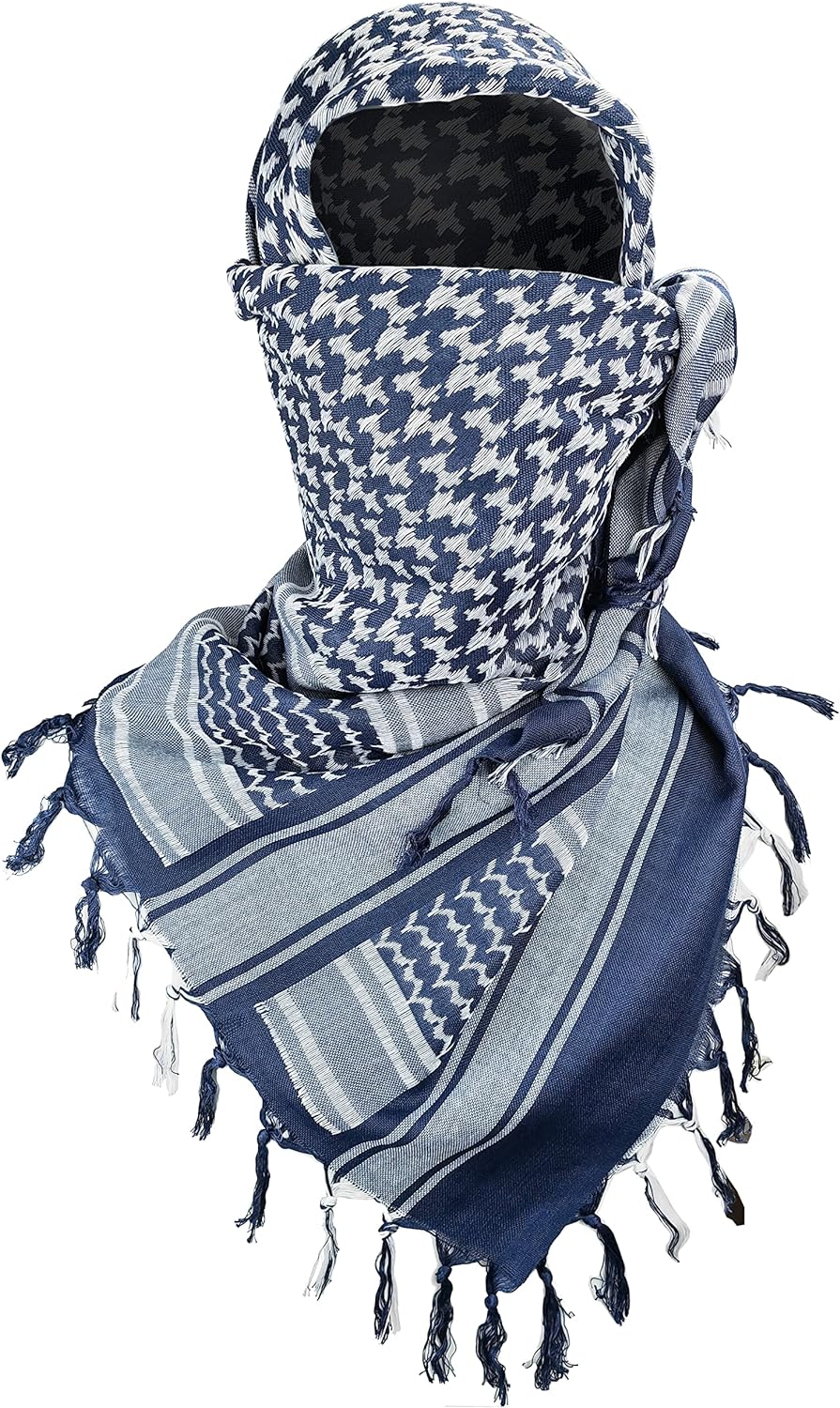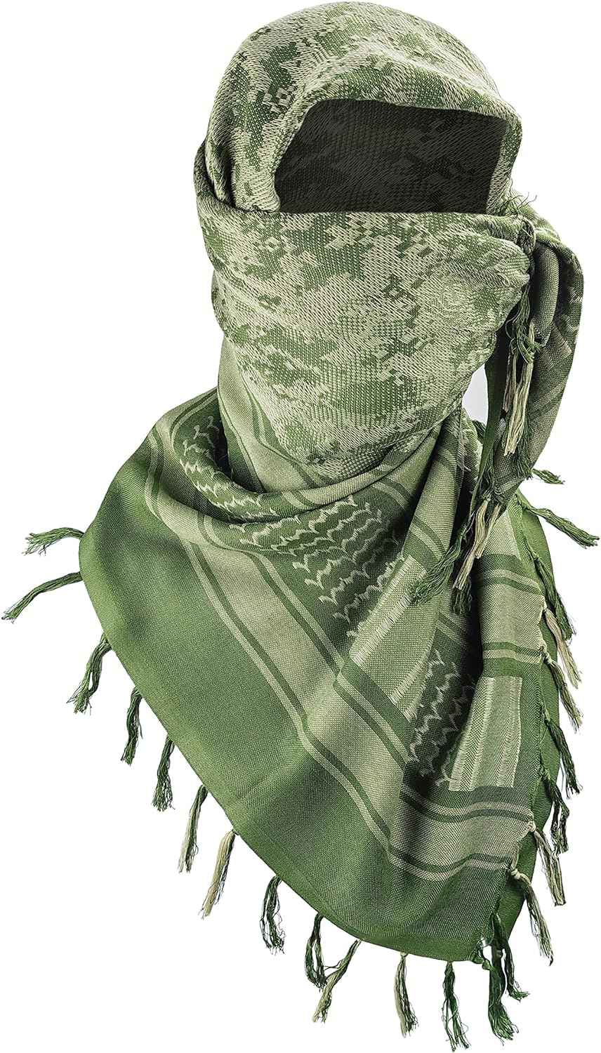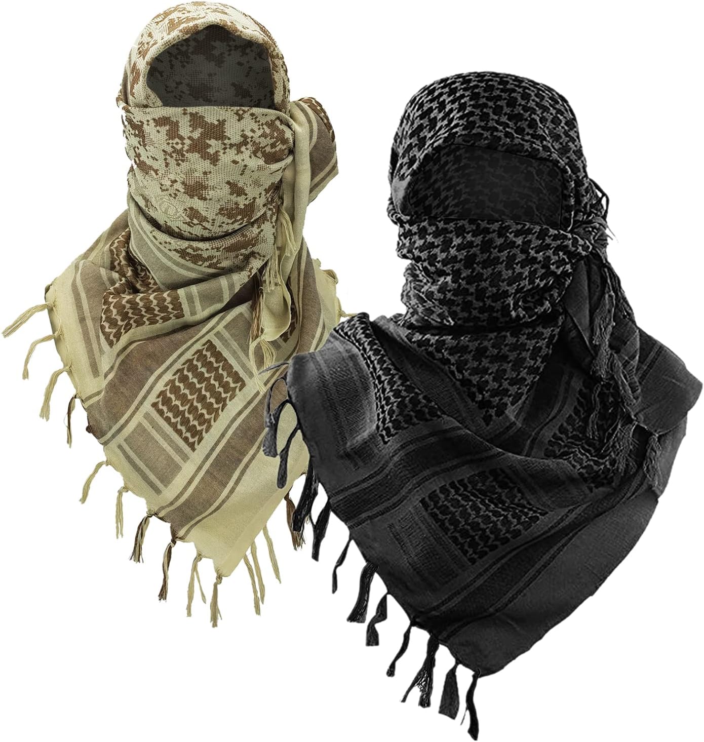 - APPROPRIATE SIZE: This Shemagh Scarf Is Large Enough, Size Approximately 43” X 43”, Perfect Size For All The Classic Neck & Head Scarf Wraps. Wrapping The Scarf Around Head And Neck Provides Optimal Protection From The Various Environments .