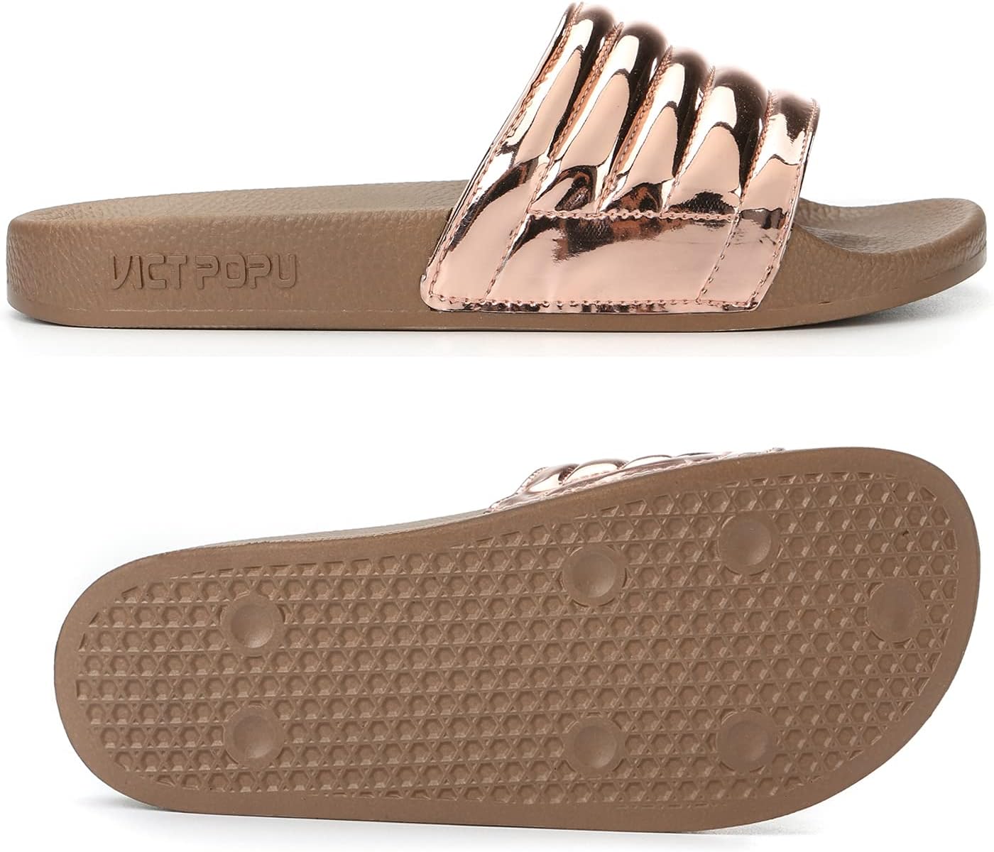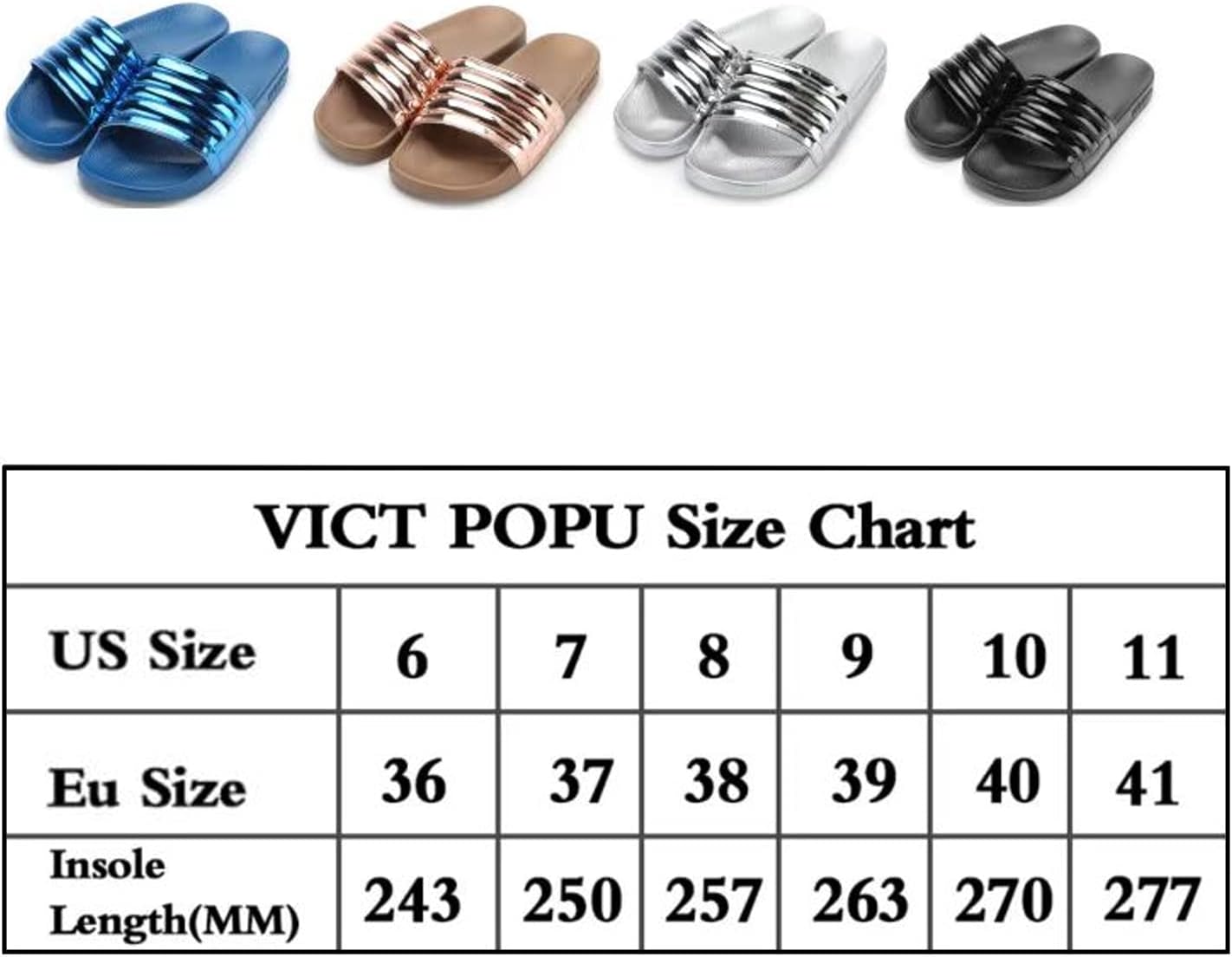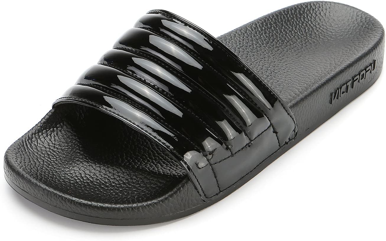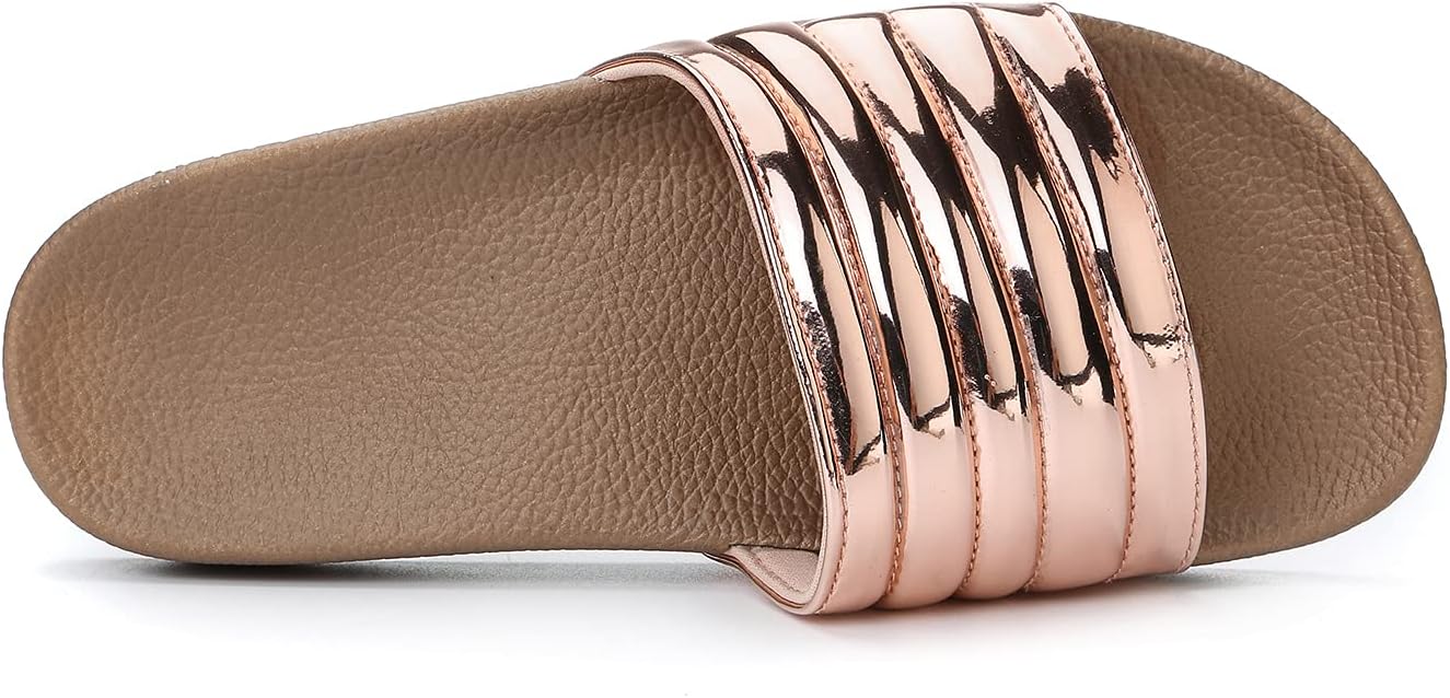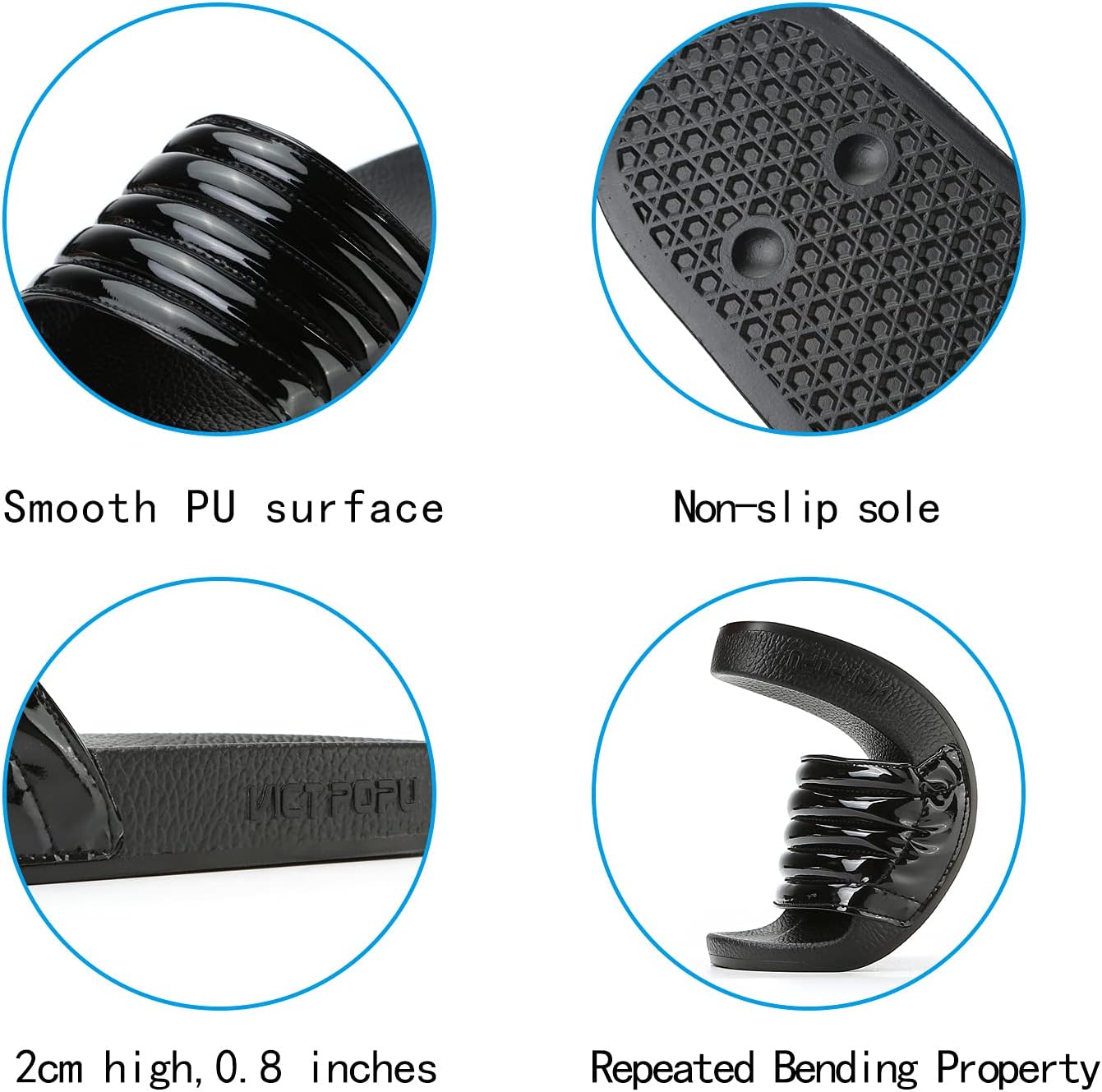 Slippers for Women Summer Beach House Pool Slip on Slides Non-slip PU Flat Sandals