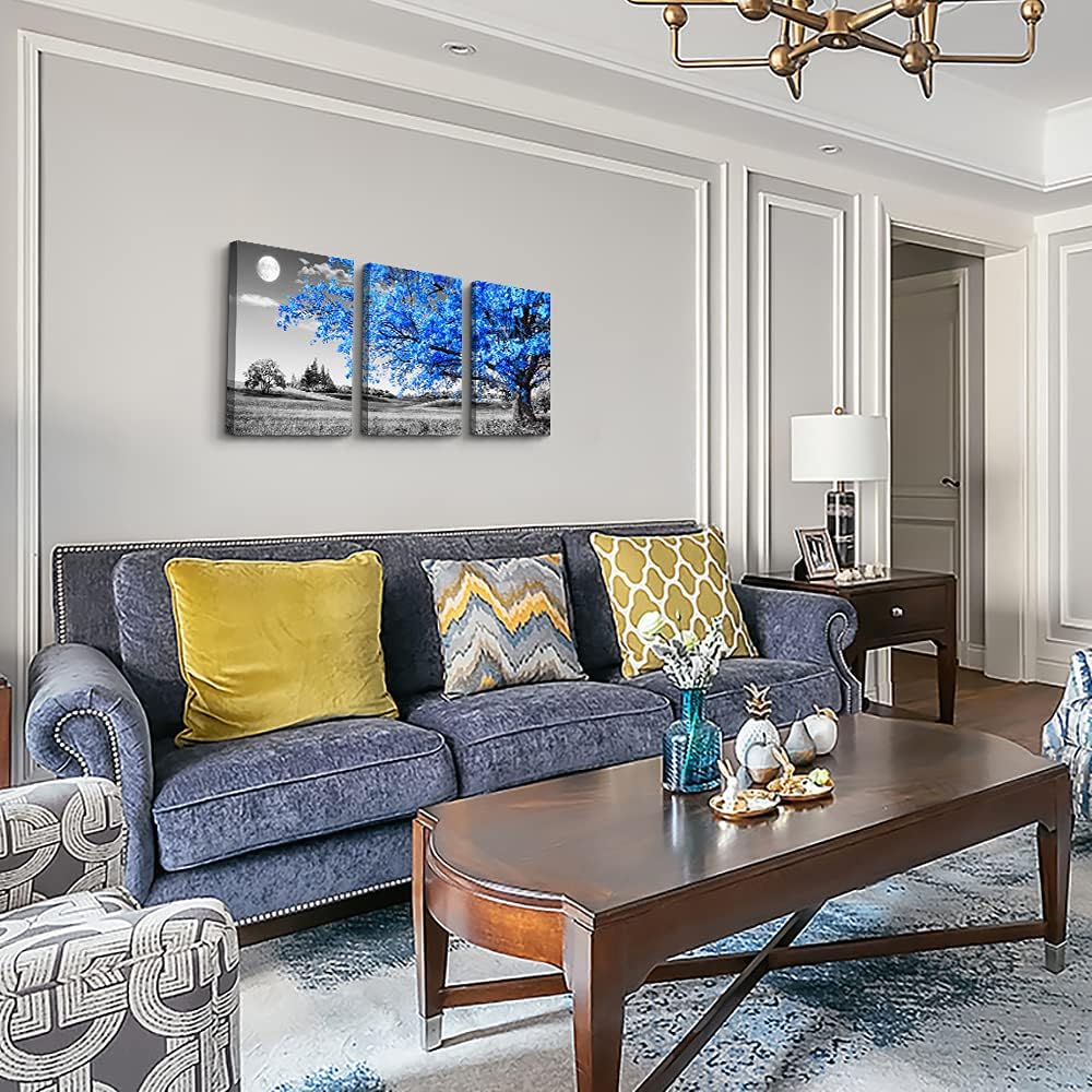 BPA Wall Art For Living Room black and white Blue tree moon Canvas Decor Home artwork Painting 12" x 16" 3 Pieces Print bedroom Modern Salon kitchen office Hang a picture