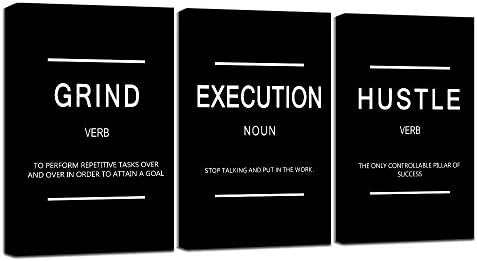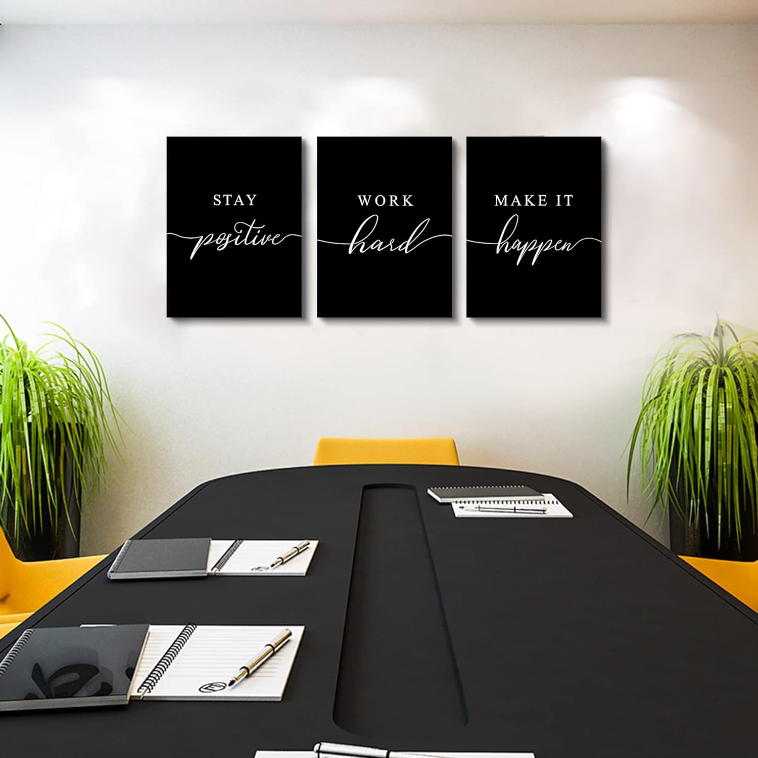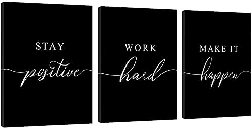 Framed Canvas Wall Art Positive Quote, Office Wall Art, Black Large Poster, Positive Motivational Set of 3 Prints,Stay Positive Work Hard Make It Happen, Inspirational Print (E-3pcs,12x16inchx3pcs)