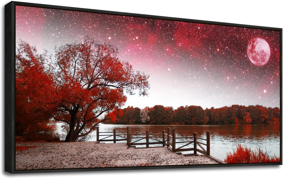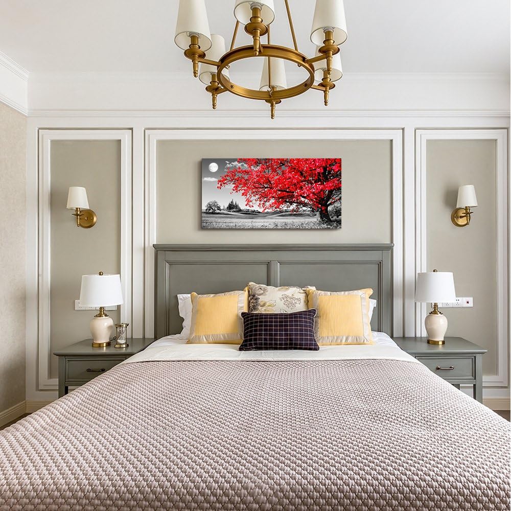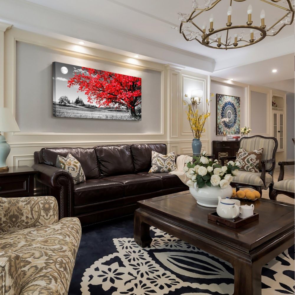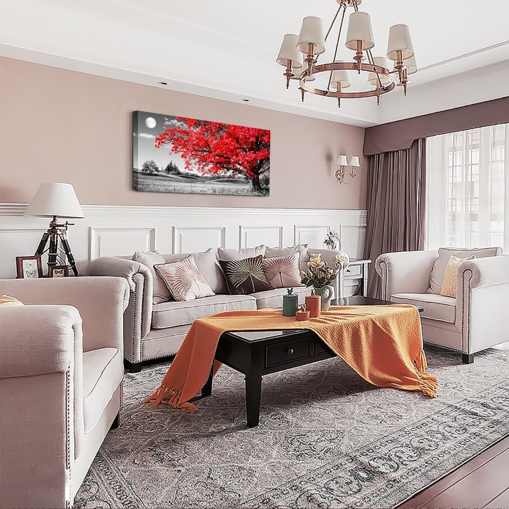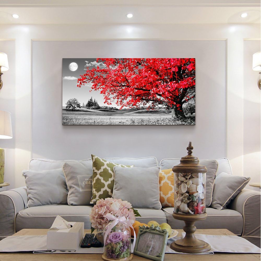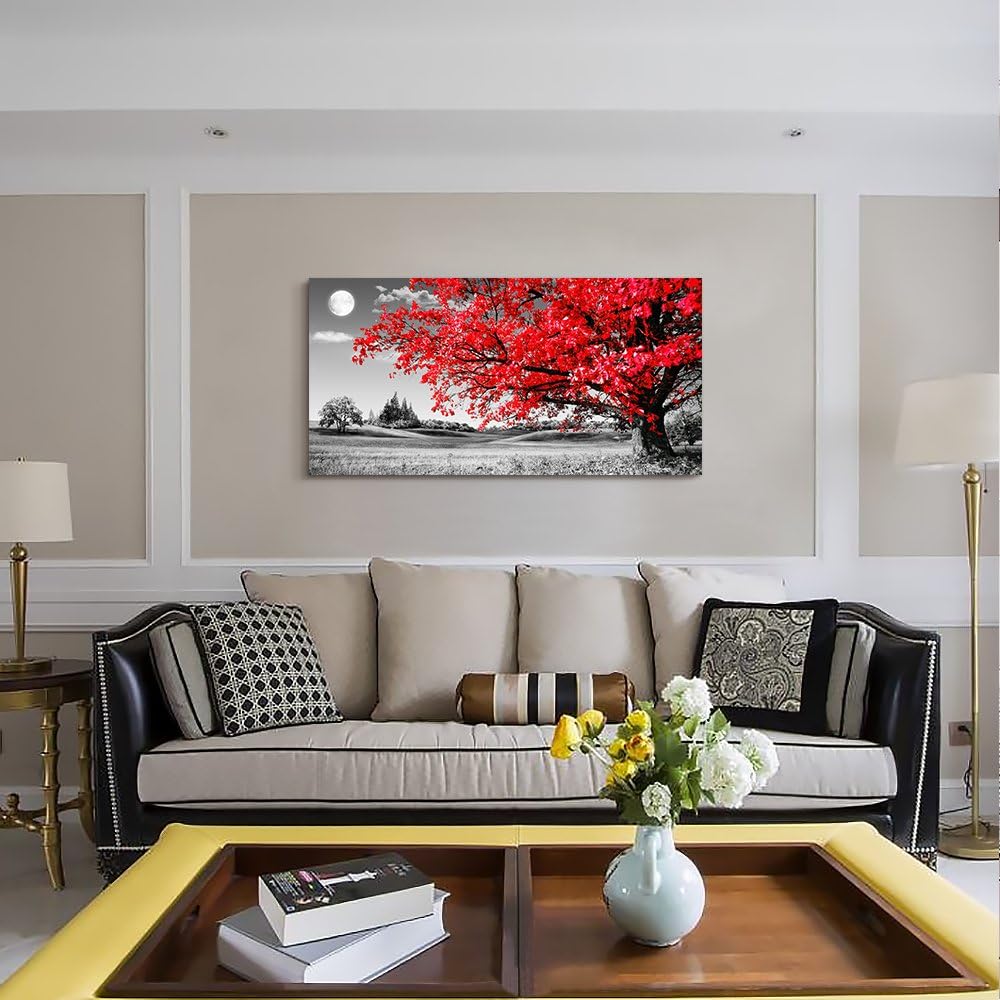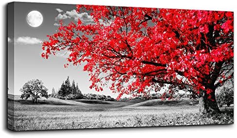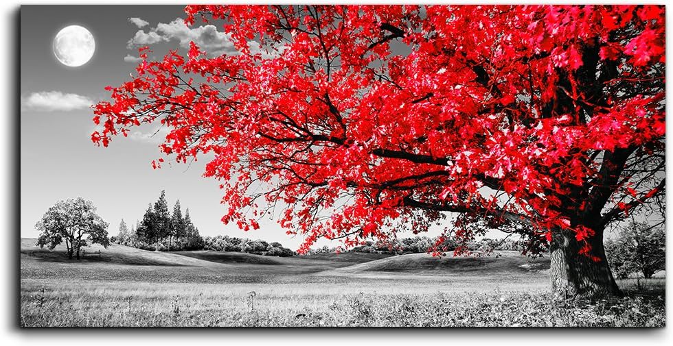 MHARTK66 wall art for living room Simple Life red moon tree scenery Abstract painting office Decor 20" x 40" single Pieces Canvas Prints Ready to Hang Home Decoration