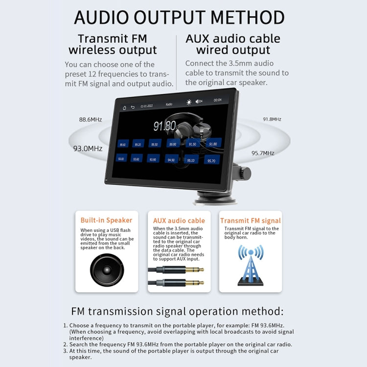 3. Radio transmission frequency: 88.60/89.20/89.50/89.80/91.50/91.80/93/.00/93.60/93.90/94.50/95.10/95.70MHz