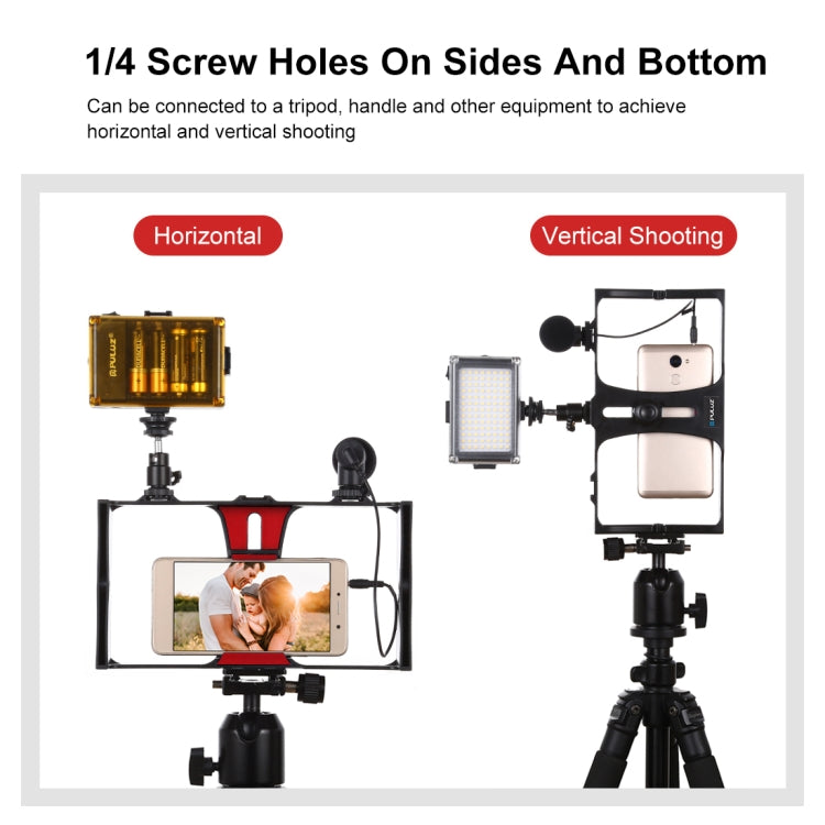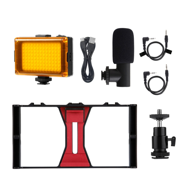 PULUZ 3 in 1 Vlogging Live Broadcast LED Selfie Light Smartphone Video Rig Kits with Microphone + Cold Shoe Tripod Head for iPhone, Galaxy, Huawei, Xiaomi, HTC, LG, Google, and Other Smartphones(Red)