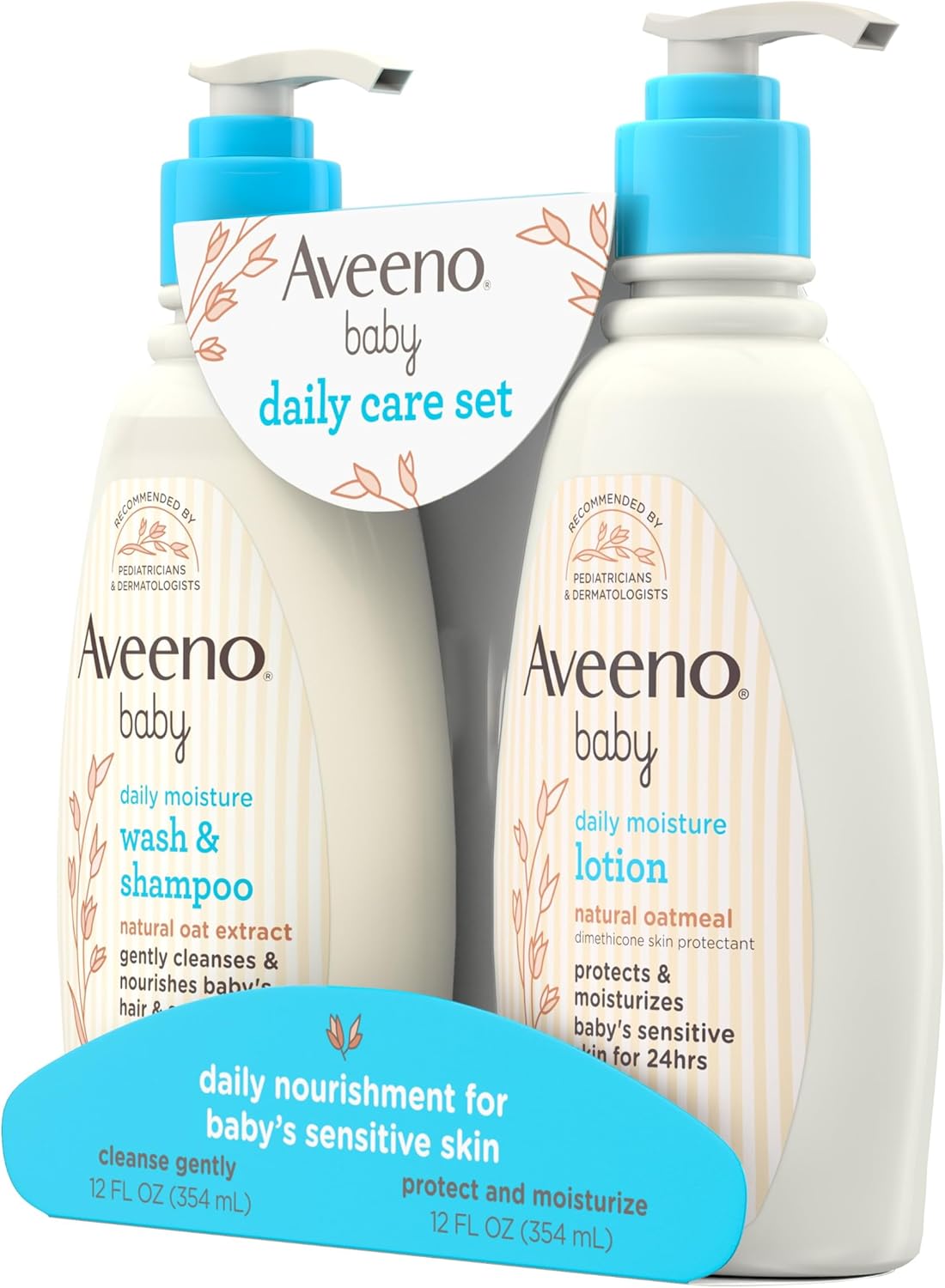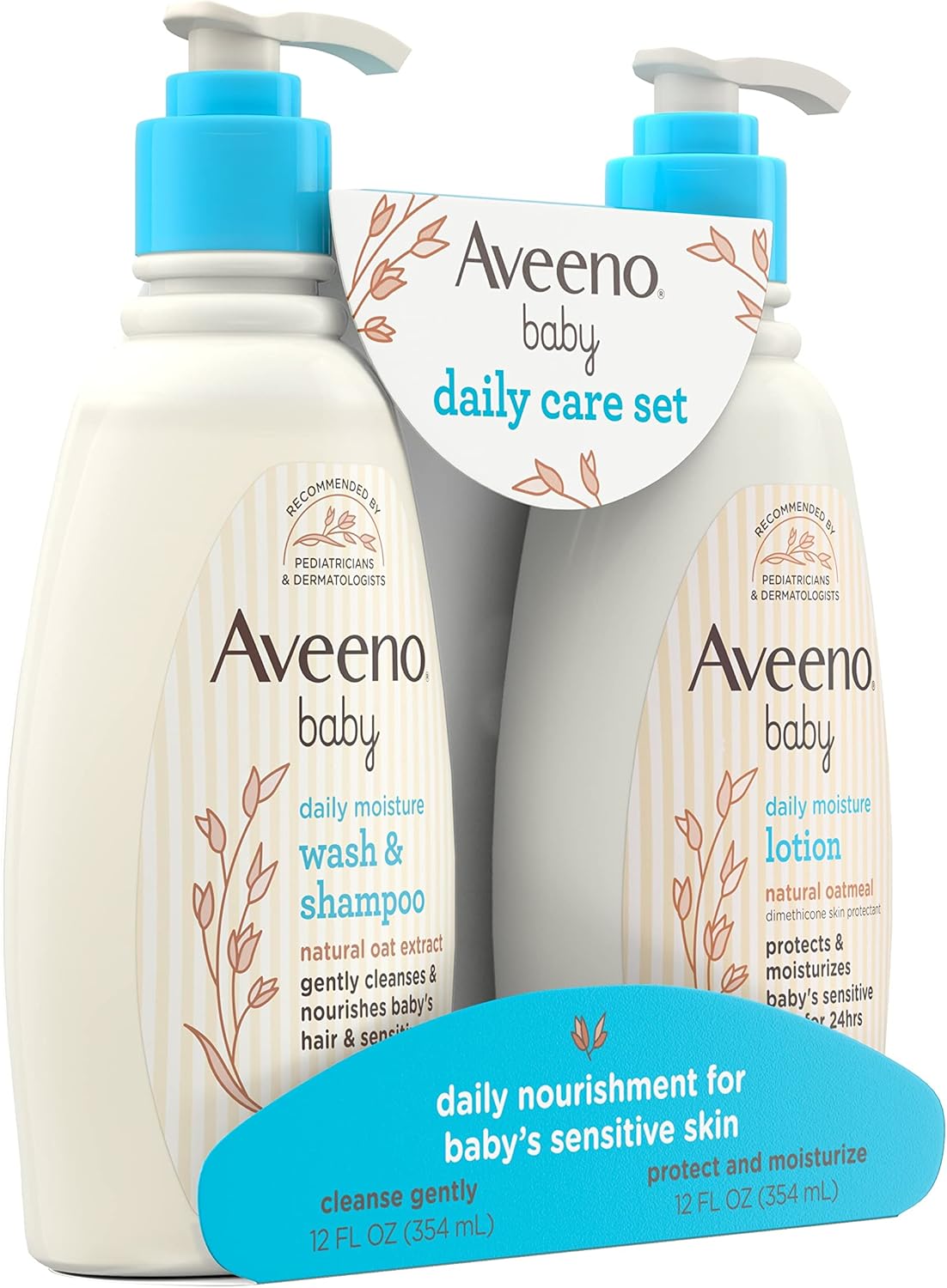 AVEENO BABY Gentle Moisturizing Daily Care Set, Natural Oat Extract, Natural Colloidal Oatmeal, 2 Items