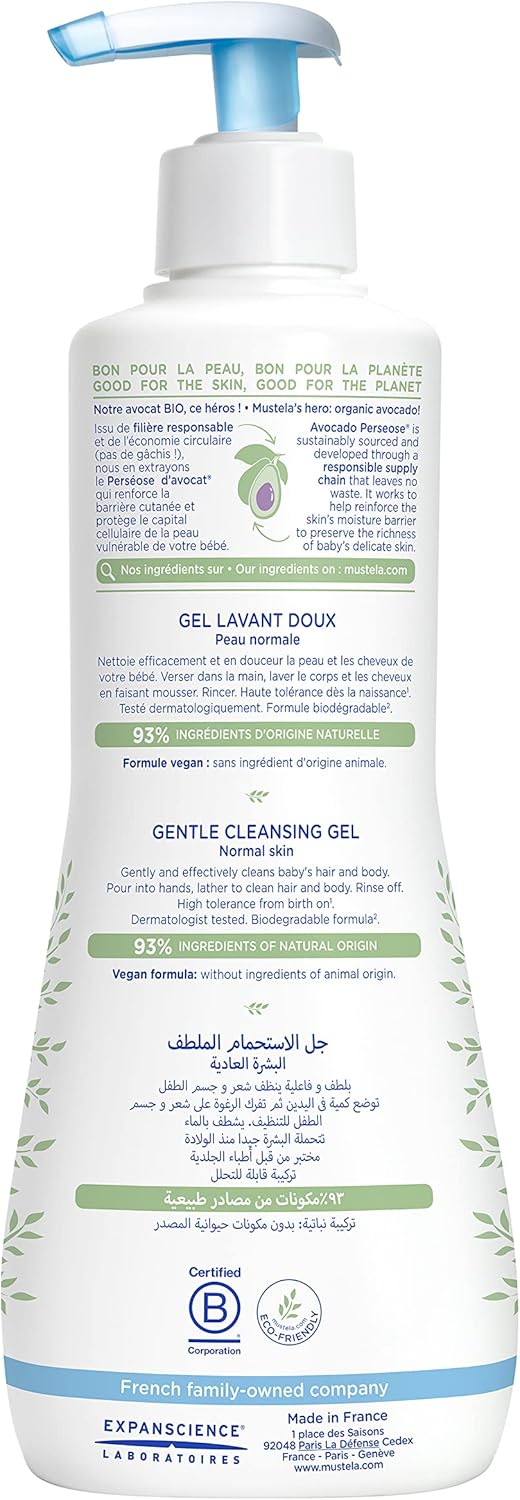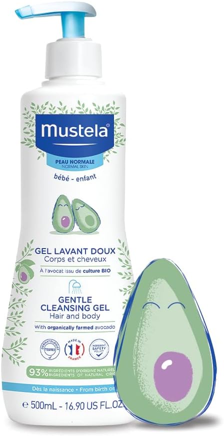 Mustela Baby Gentle Cleansing Gel - Baby Hair & Body Wash - with Natural Avocado fortified with Vitamin B5 - Biodegradable Formula & Tear-Free - Pack of 2 - 500ml