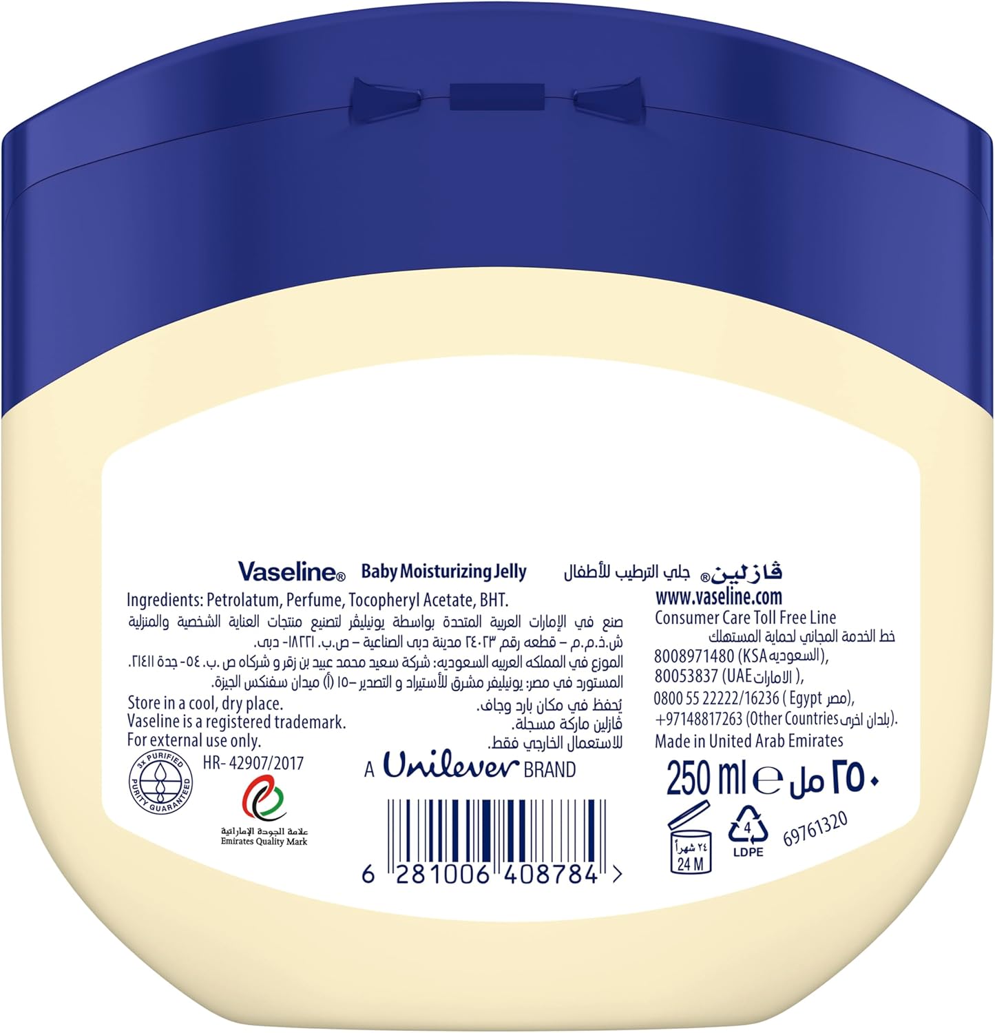 VASELINE Moisturizing Petroleum Jelly, to sooth and protect baby skin, Baby, hypoallergenic and gentle on skin, 250ml