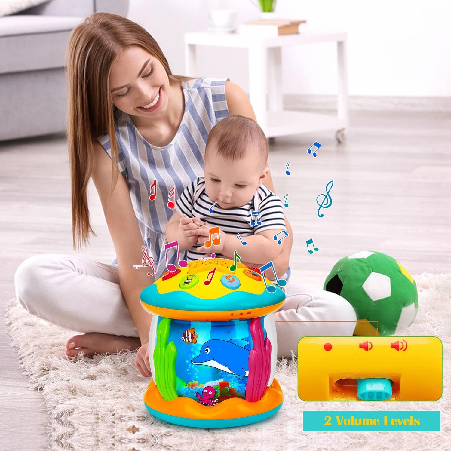 • 【Musical Toys with Animal & Melody Sounds】baby toys come with 6 kinds of animals sounds and melody music. You can press the change-over button to change animal sounds or music mode and adjustment button to make the music softer or louder. The baby musical toys can help develop the brains of babies 6 9 12 18 months.