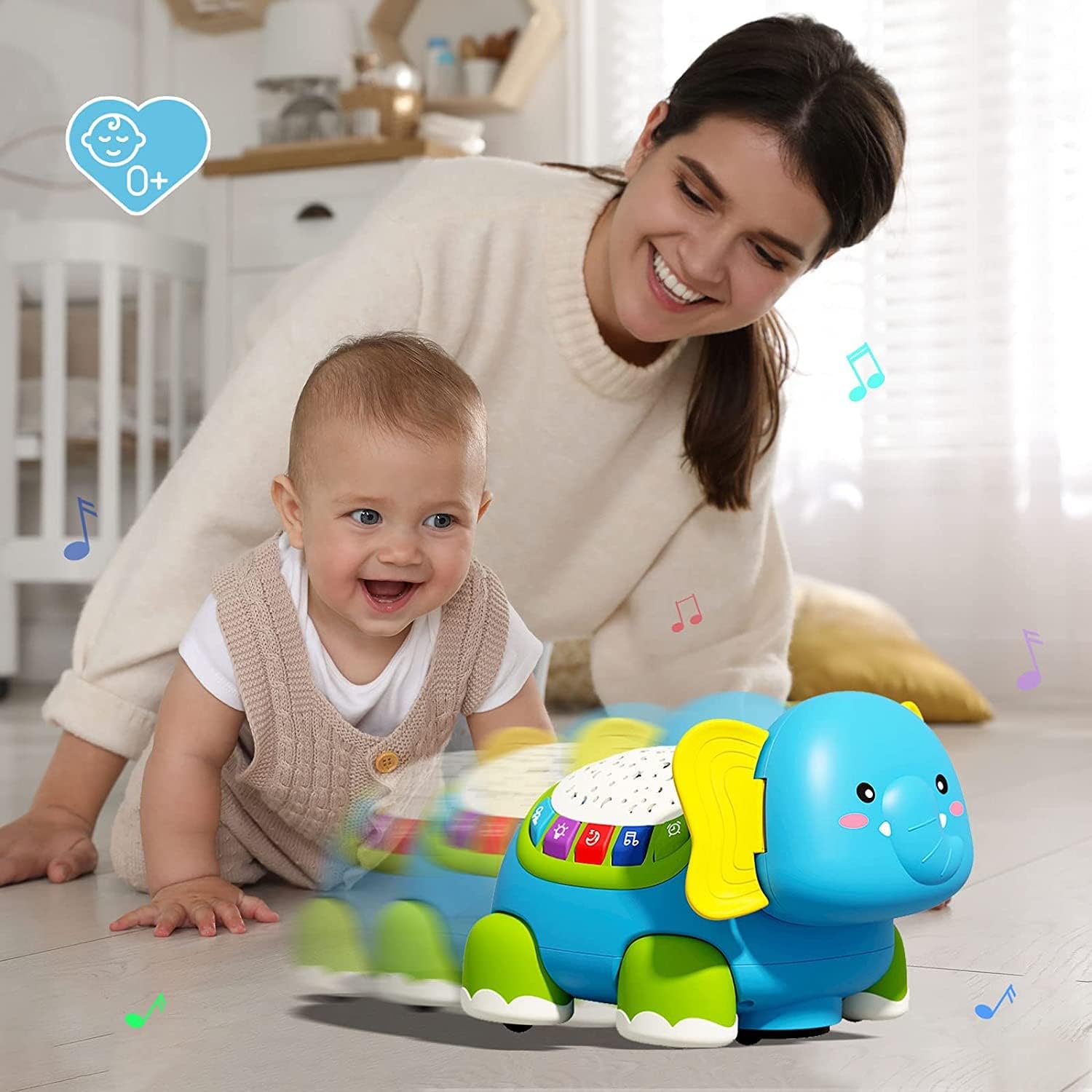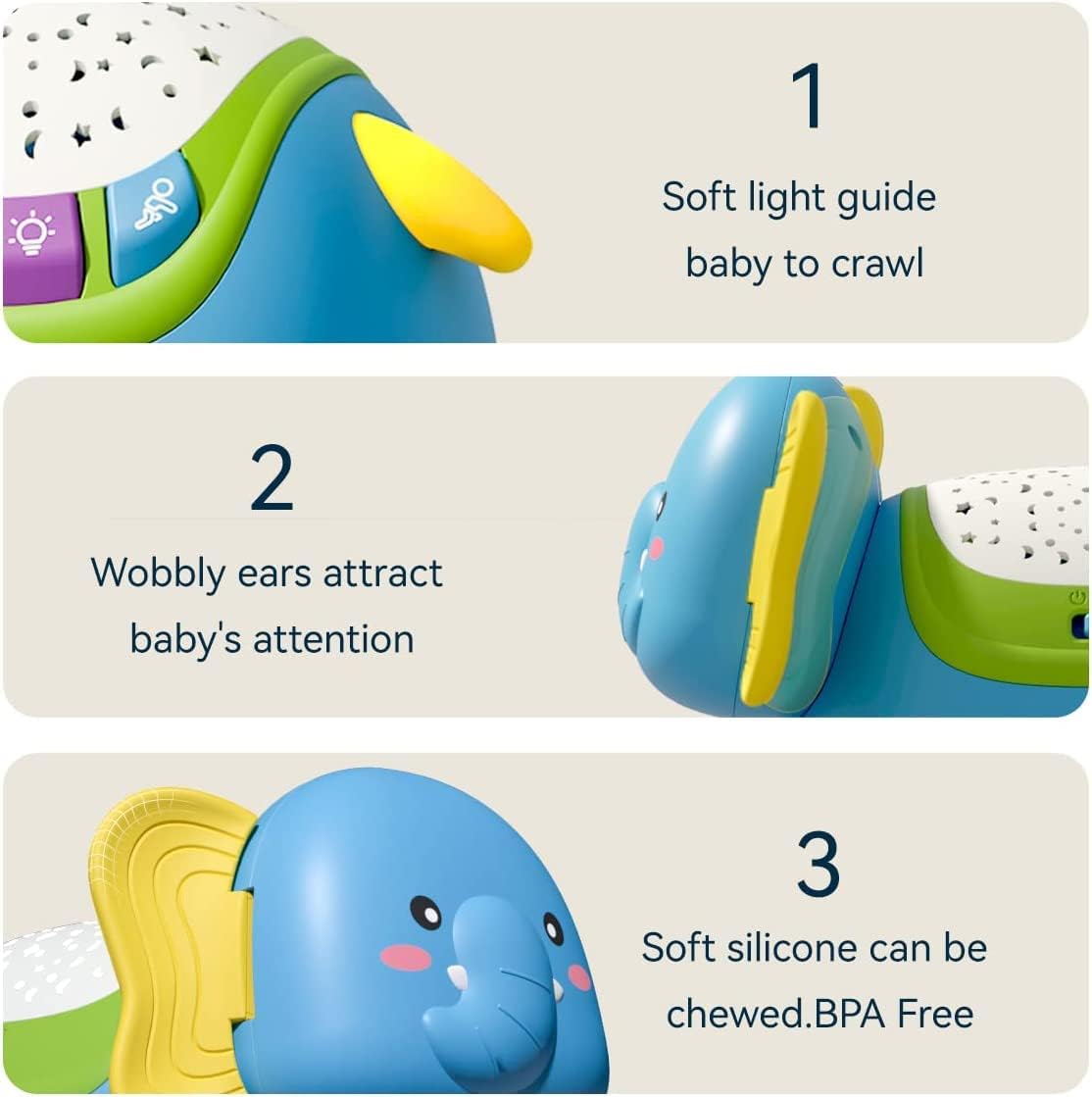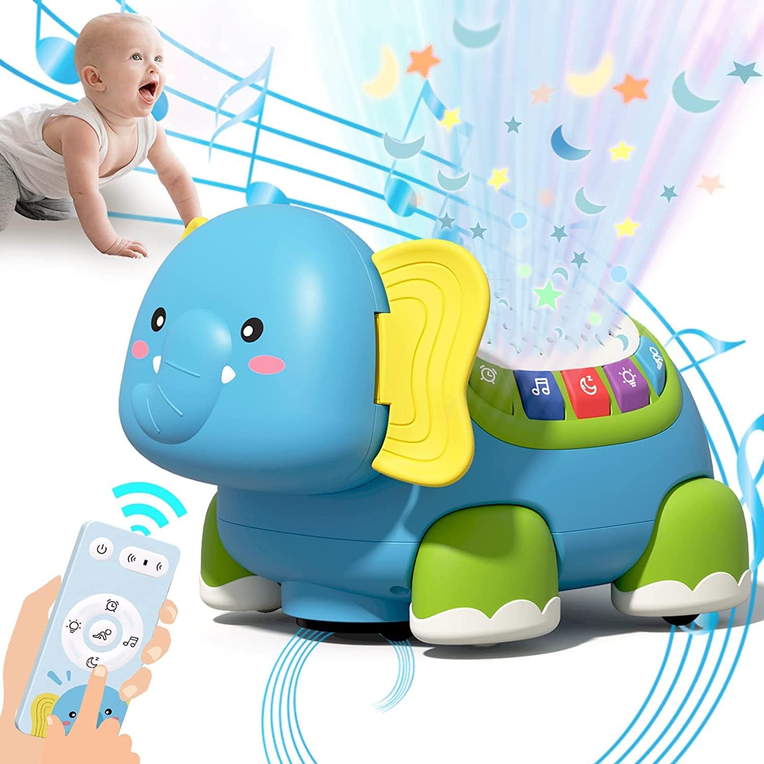 AM ANNA Baby Toys 6 to 12 Months, Baby Crawling Toys Elephant Musical Light Up,Infant Toy with Light & Sound Projector,Tummy Time Toy for 12-18 Months Boy Girls
