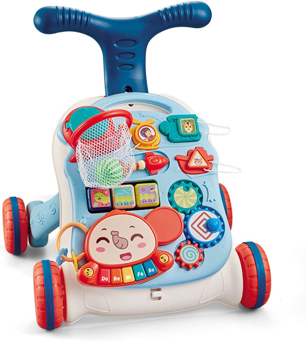 • 🌈[Game Board for Early Development]: We got all kinds of games in one board for baby to play. From elephant shaped piano (Batteries not included),turning cube, shape recognition block, colorful turnable gear, small beads, detachable basketball frame, these games stimulate certain brain areas to strengthen their motor skills, color recognition and musical sense.