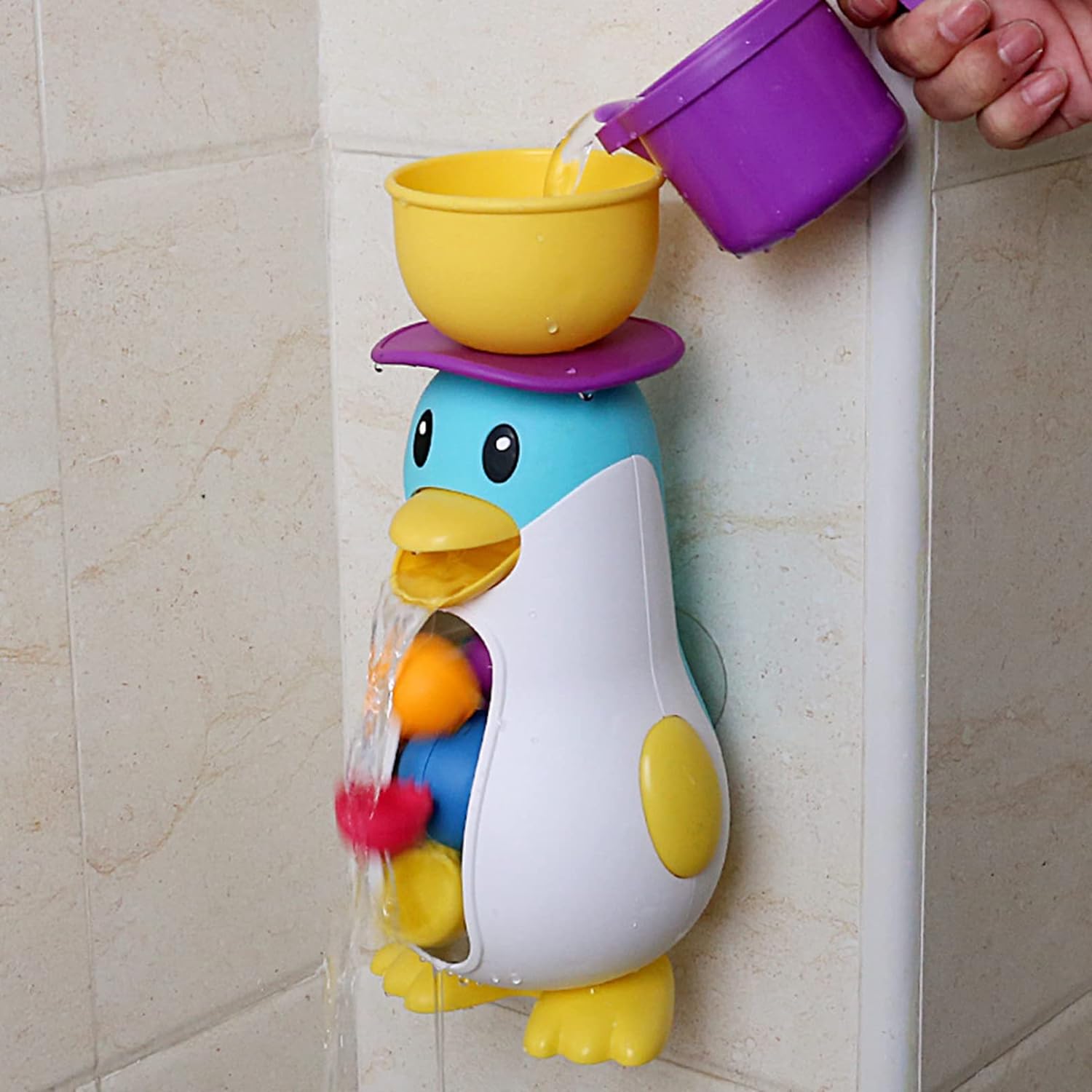 AM ANNA Bathtub Toys for Toddlers Kids 1 2 3 4,Ducky Penguin Waterwheel Bath Toys for Boys Girls Preschool Bath Toy,Bathroom Strong Suckers Water Scoop (Penguin Waterwheel Bath Toys)