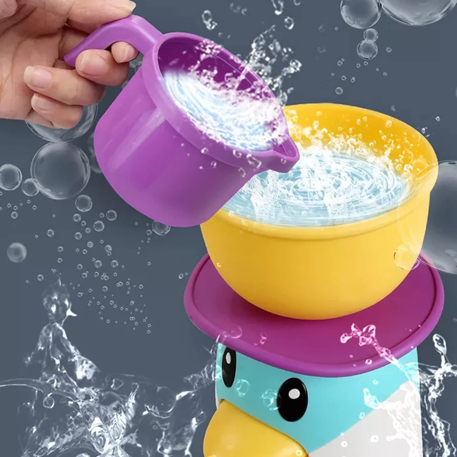 - đ ăGREAT PENGUIM BATH TOYSăCreate a Warm Time for Parent Child Interaction .When you water the penguin with purple cups,it will open mouth and waterwheel turn.So exciting for babies kids toddlers 1-3 3-4 years.