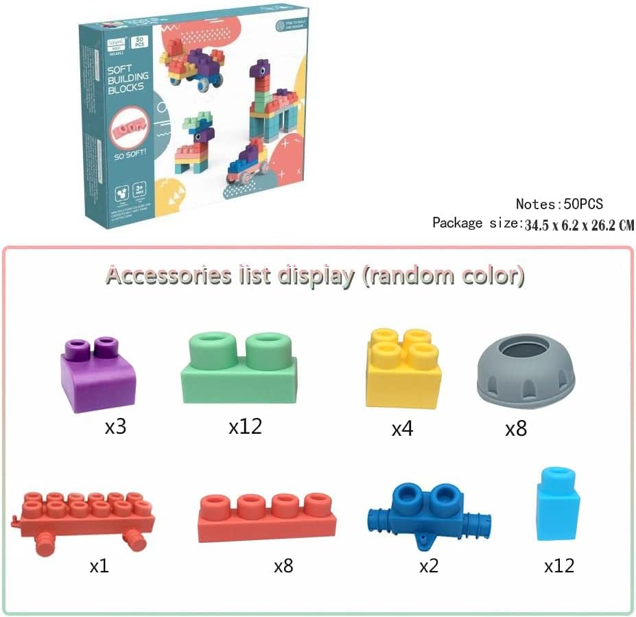 AM ANNA Soft Building Blocks Toys,50 Pcs Build Blocks Sensory Toys for Kids STEM Educational Sets Learning&Development Toys Stacking Block Kit Educational Infant Blocks for Toddlers Baby 1-5 Years Old
