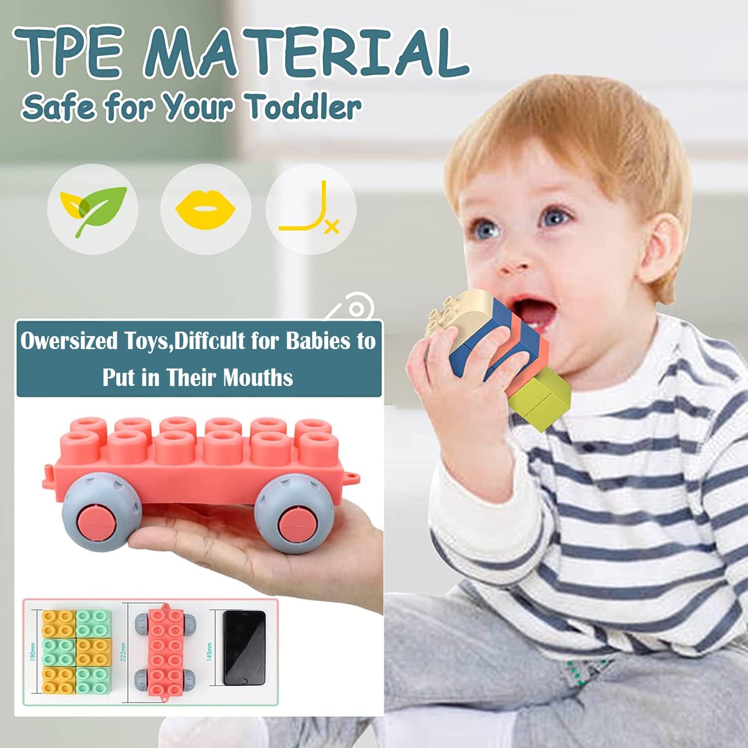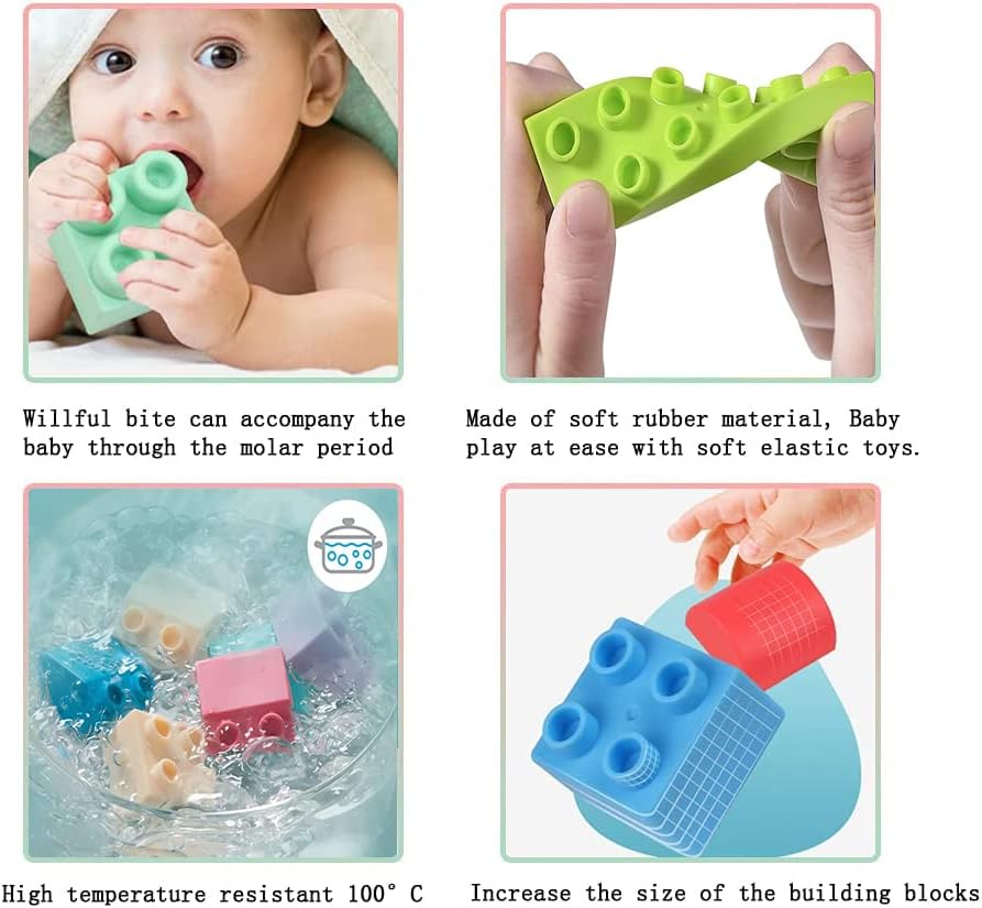 - [Infant Toys] : We know you're worried about your child biting the blocks or even chewing and swallowing them. Our blocks are soft, non-toxic, and highly durable, so they can withstand all kinds of chewing by your child.