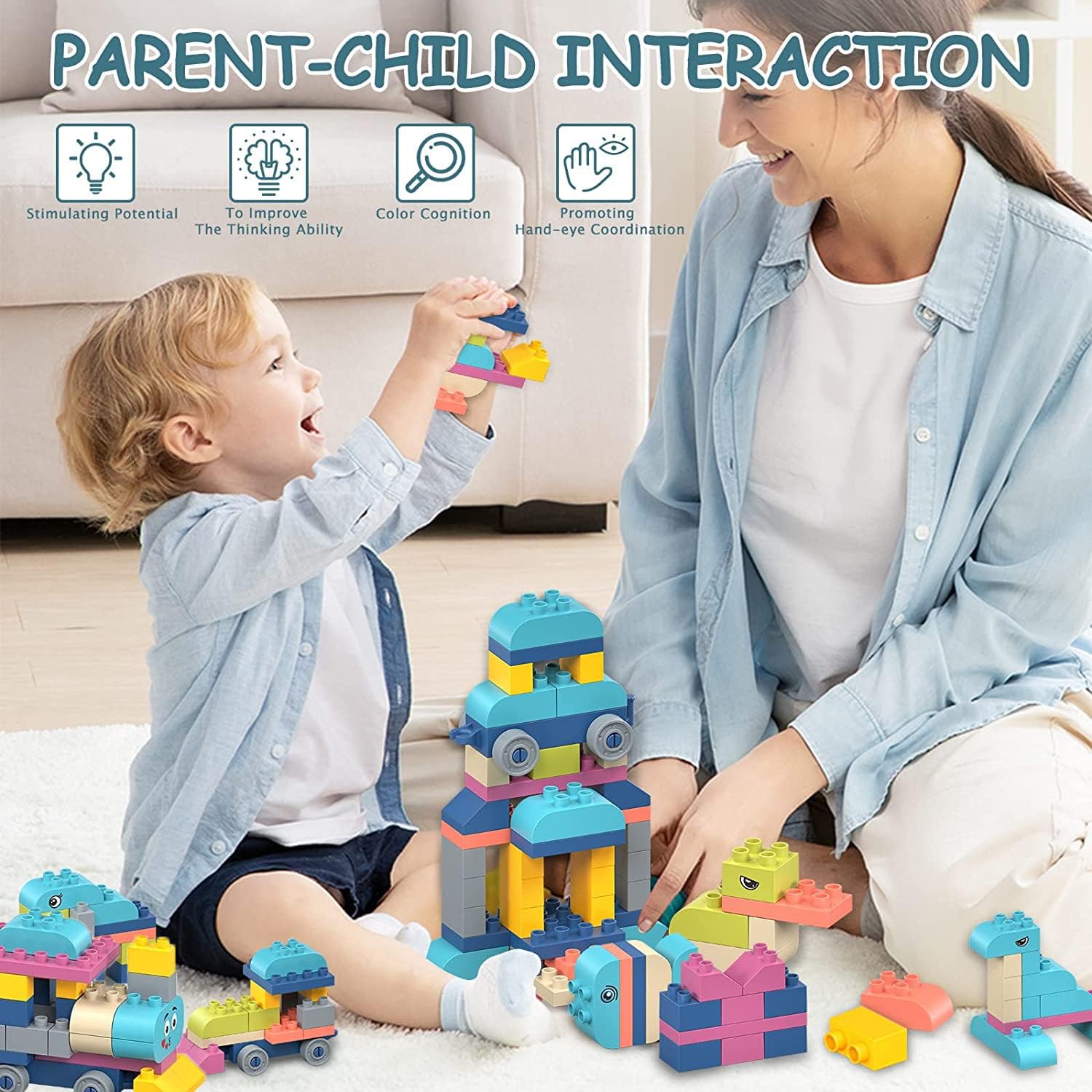 - [Versatile] :The brightly-colored toddler building blocks offer endless possibilities for having fun. Our easy-to-clean toddler building toys are great indoors or outdoors.