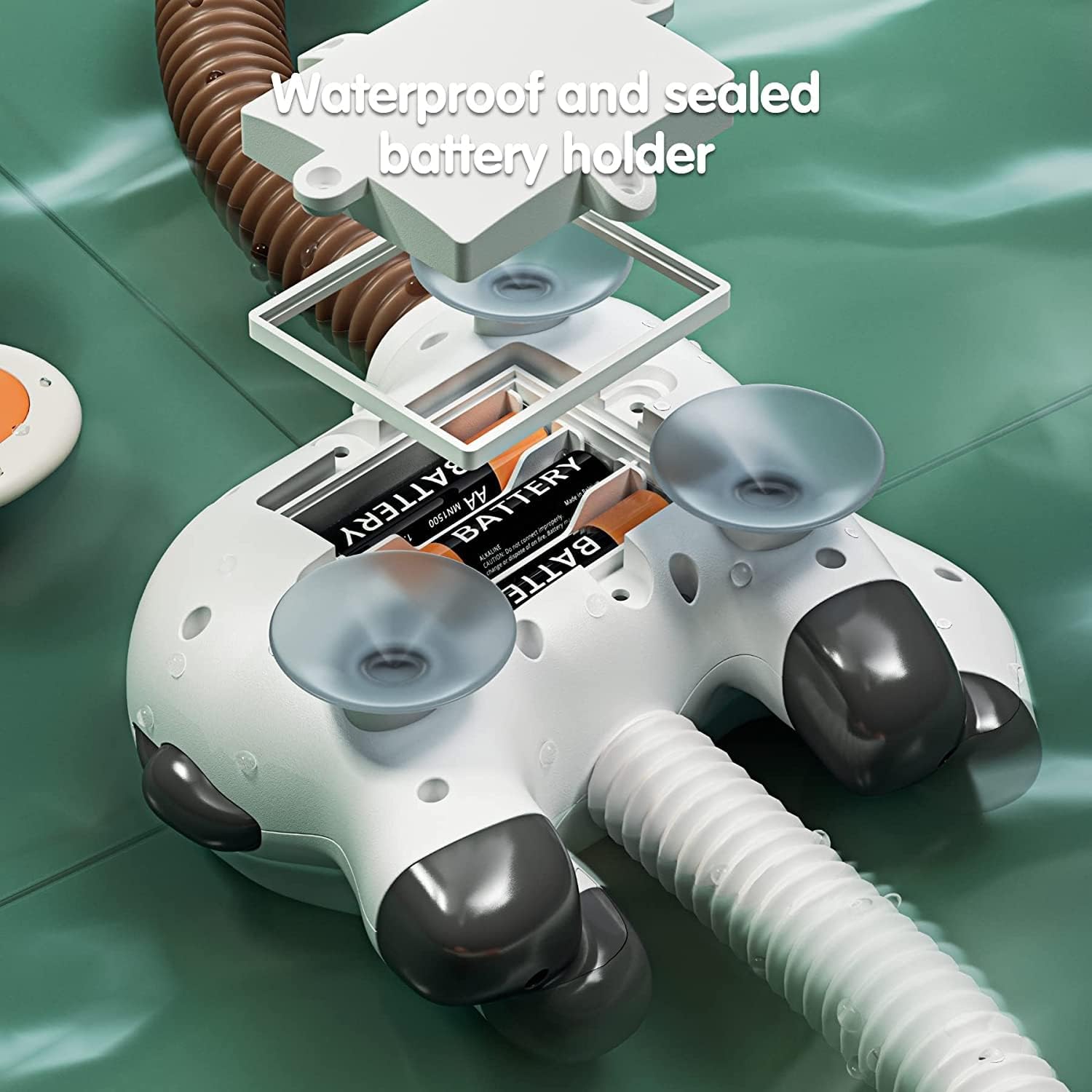 • WATERPROOF BATTERY COMPARTMENT-The bath toy equiped with all - round waterproof safety sealed battery compartment, the battery cover has rubber seal around so no worry of water getting into the battery compartment,so that can extend service life of both battery and device.Powered by 3×AAA batteries(batteries are not included).