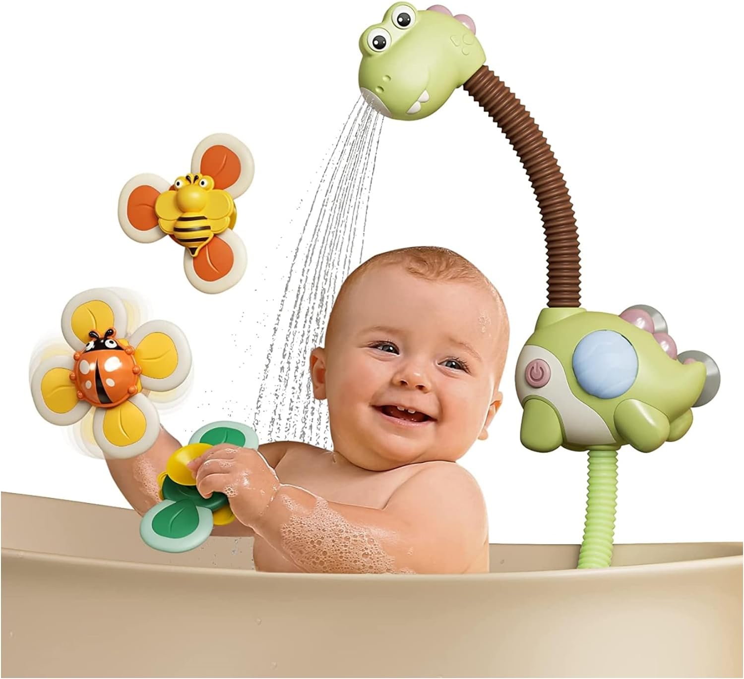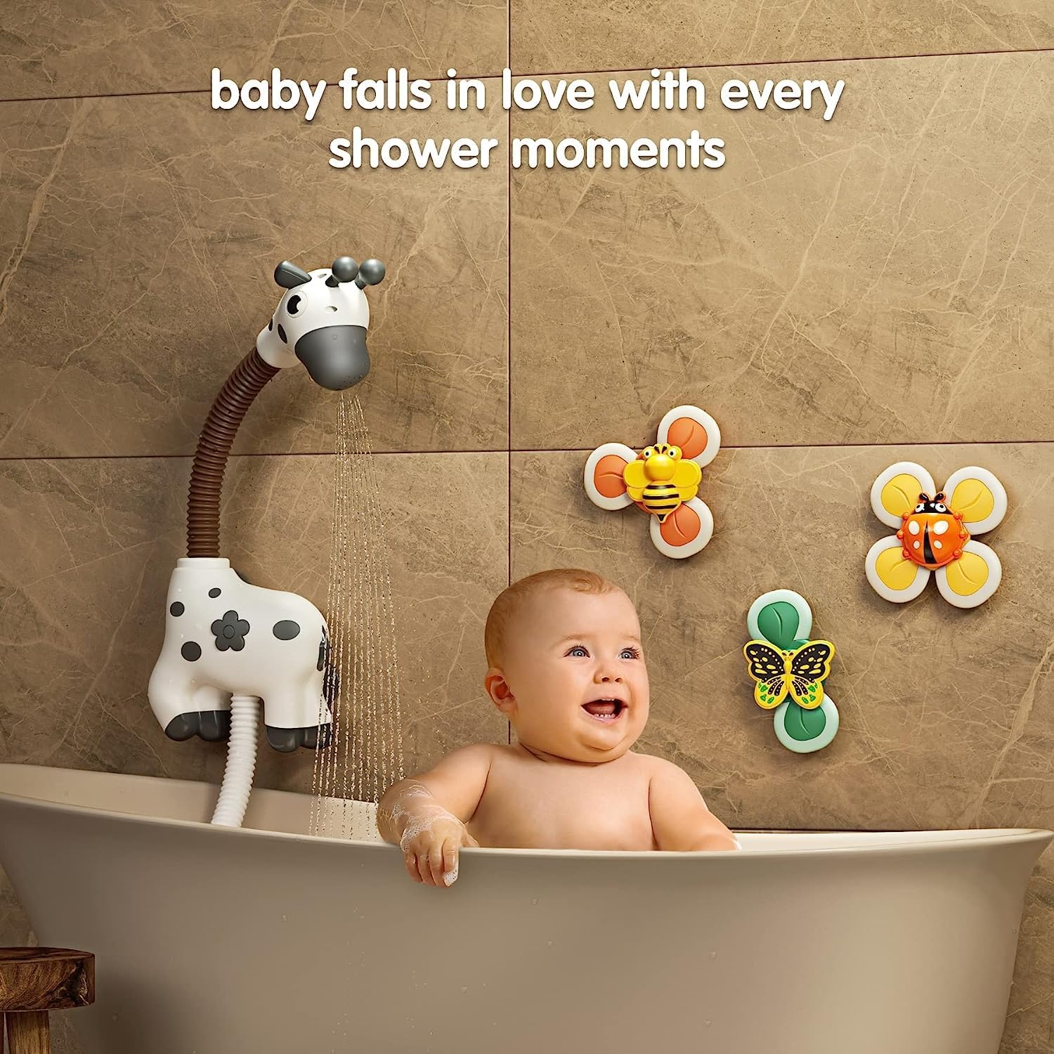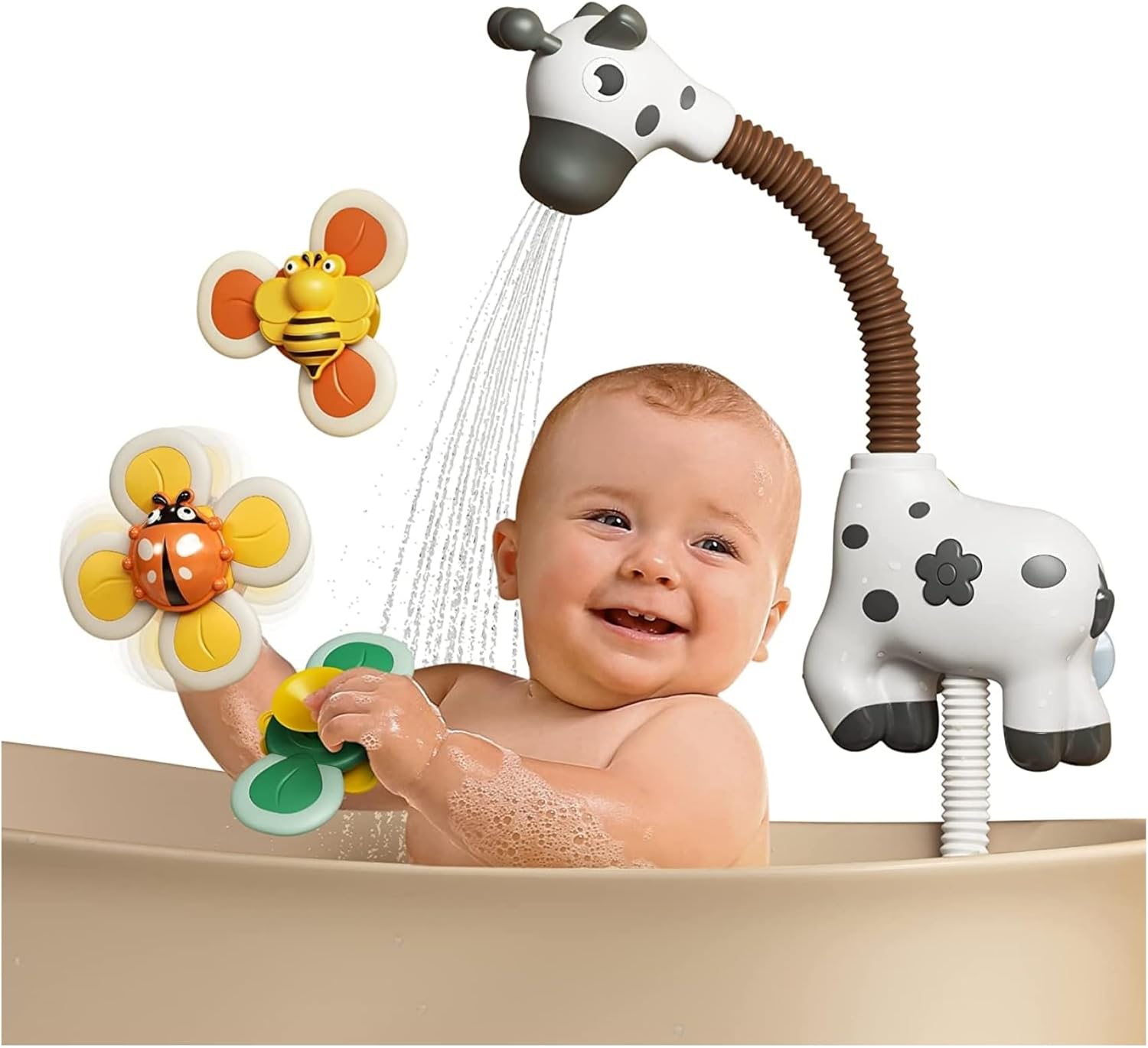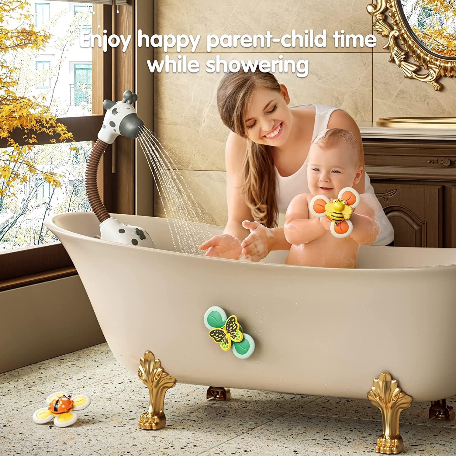 Baby Bath Toy with Shower Head and 3 Suction Spinner Toys, Giraffe Wat – BUYO