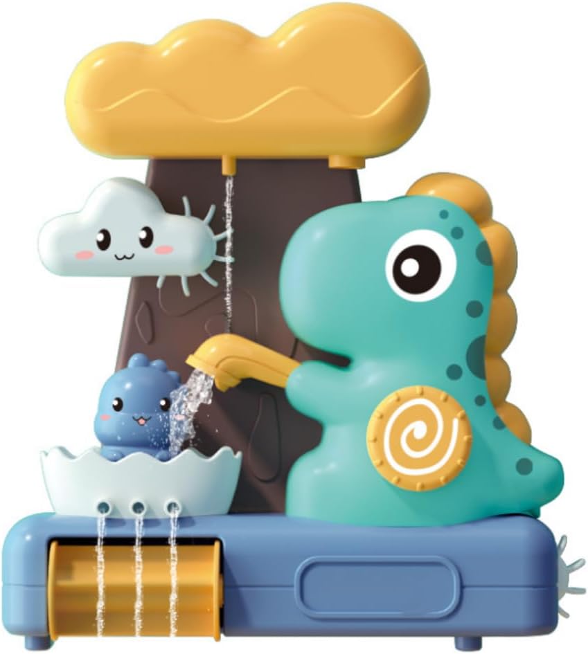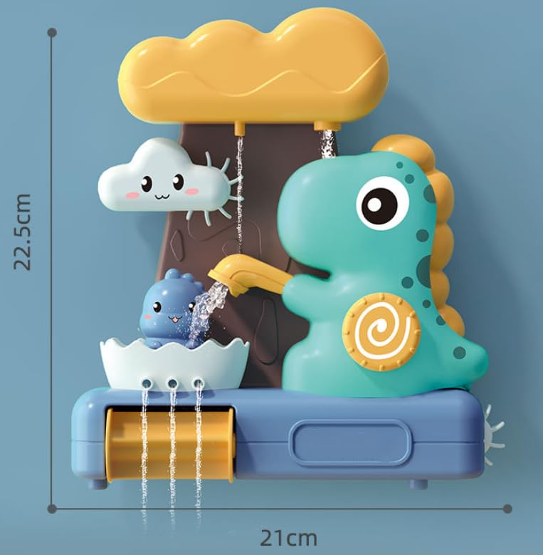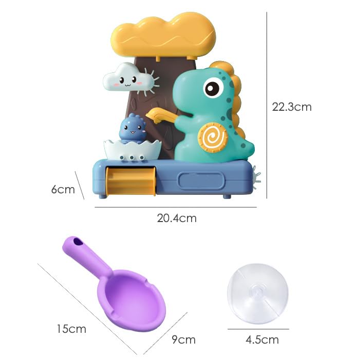 • Unique Design: The baby bath toys designed by cartoon image will attract baby’s attention while bathing time. When the baby pours water into the toy, the gravity of the water causes the cloud to rotate, and the dinosaur mother will watering the dinosaur baby , accompanied by many beautiful water lines, so that the water and baby form a joyful interaction.