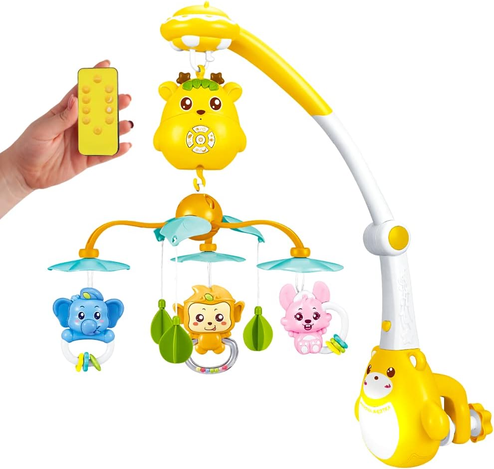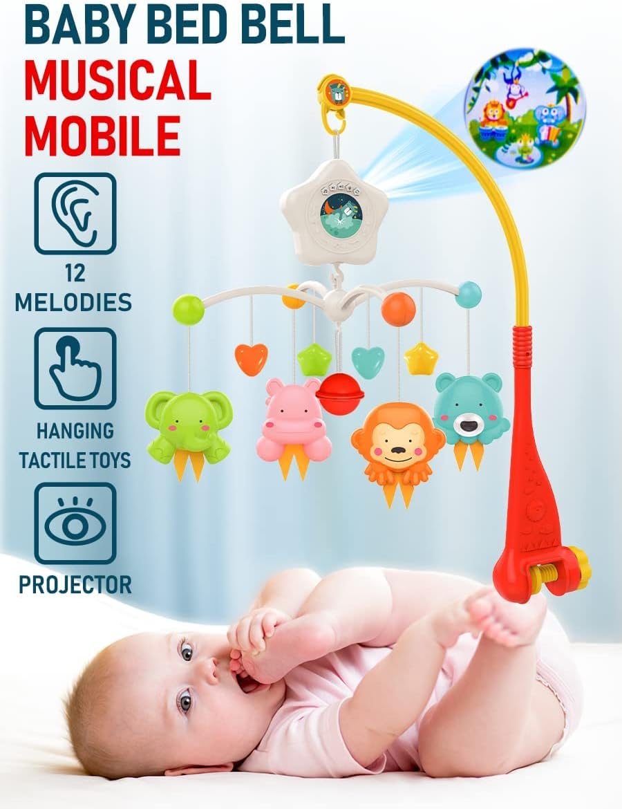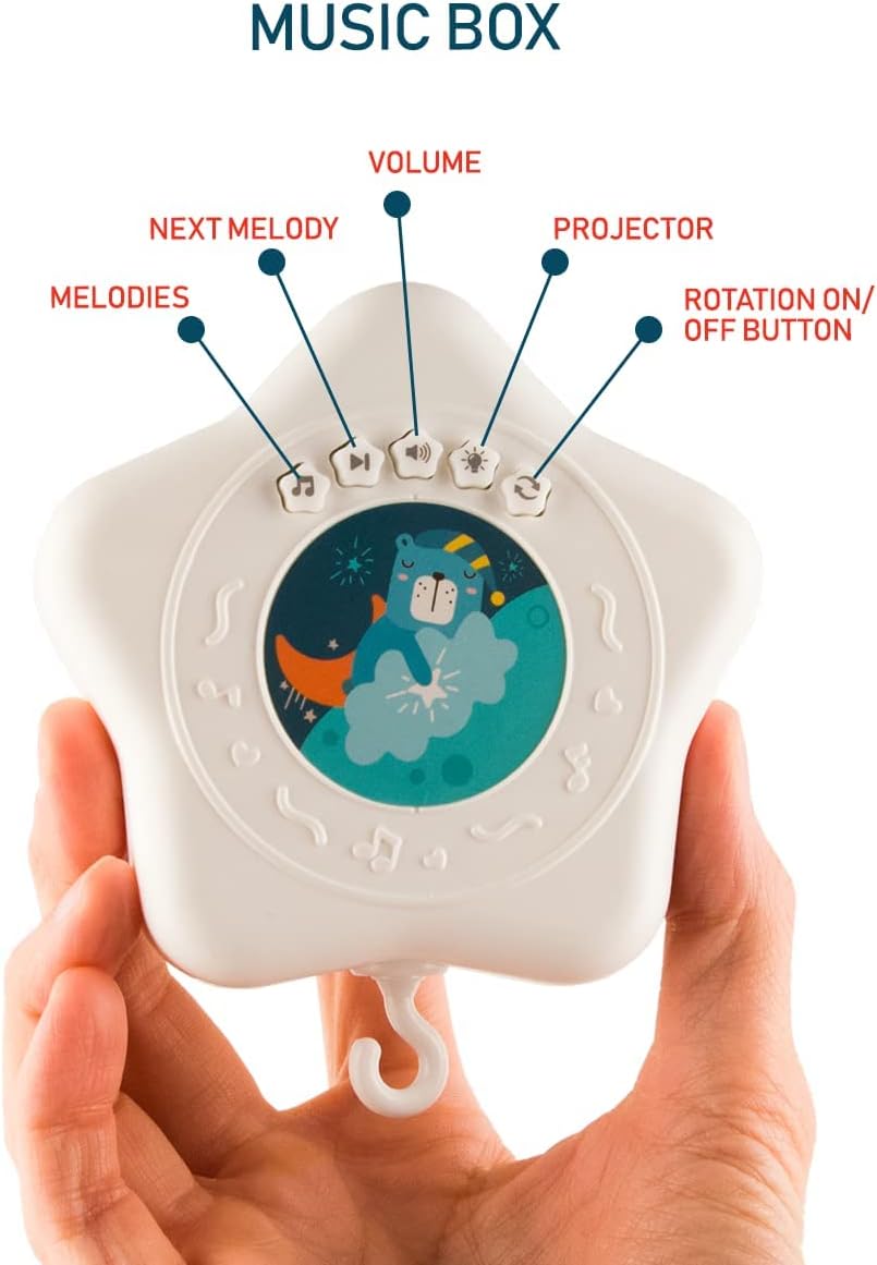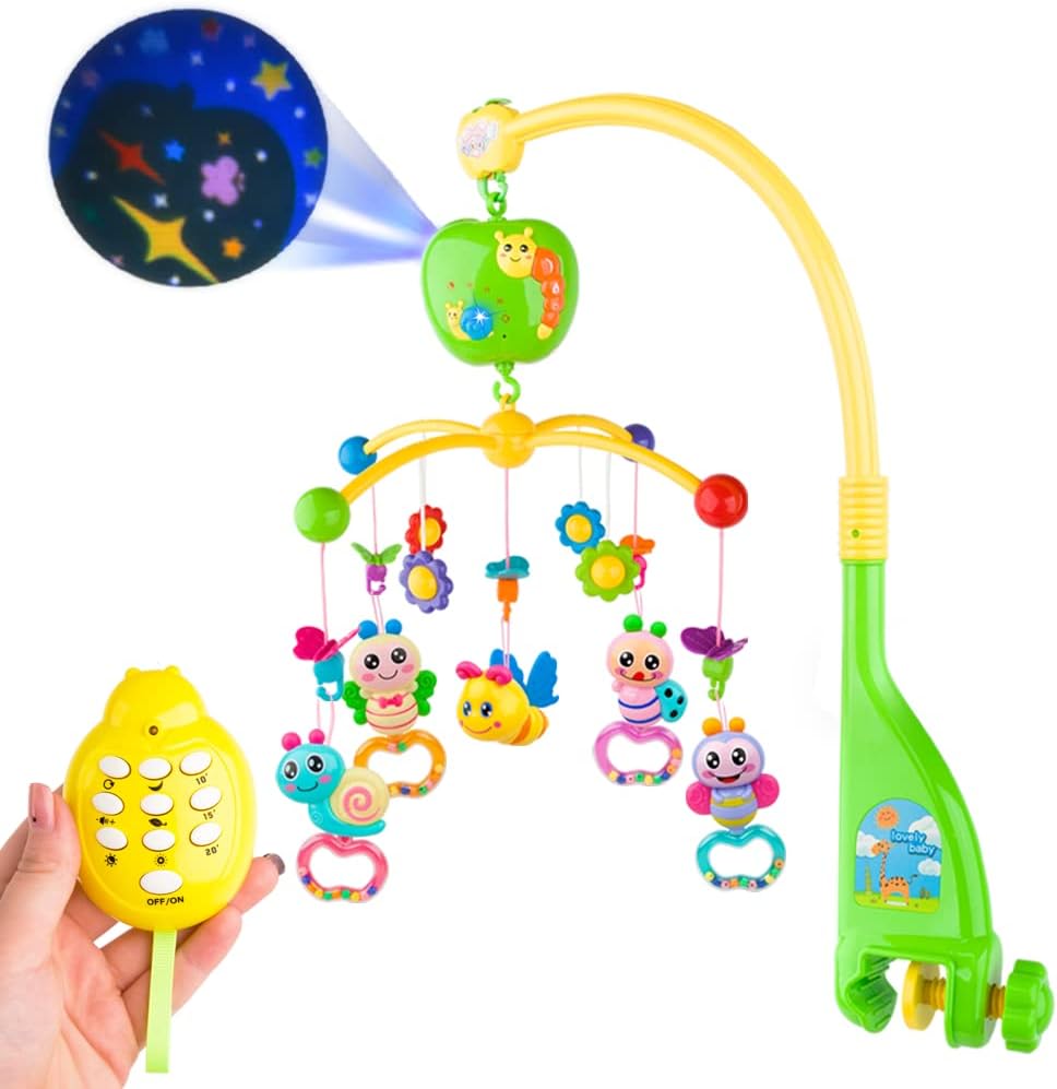 Baby Musical Side Crib Mobile with Lights, Projector, Hanging Toys & Bed Bell for Sleeping - Remote Control, Carrousel, Spinning, Music Box, Rattles - Newborn, Infants, Girls & Boys 0-6 Month