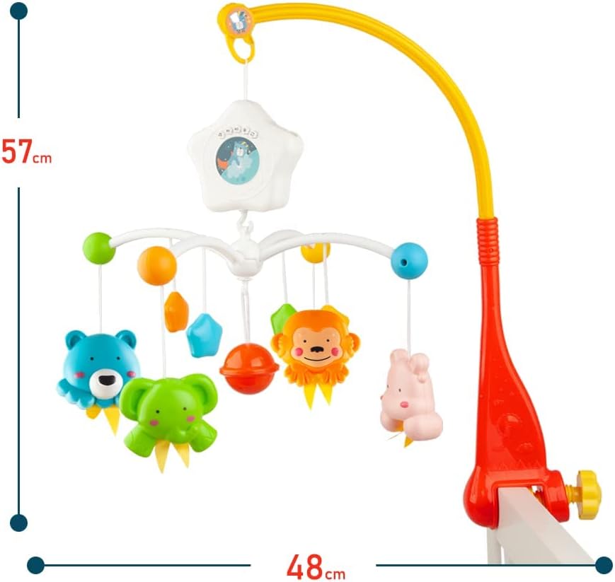 ROTATING MUSICAL MOBILE: Four adorable dream pets dance and twirl to help lull newborn infants to sleep. A monkey, hippo, elephant and bear gently keep watch at bedtime. Intended for ages newborn 0 to 6 months.