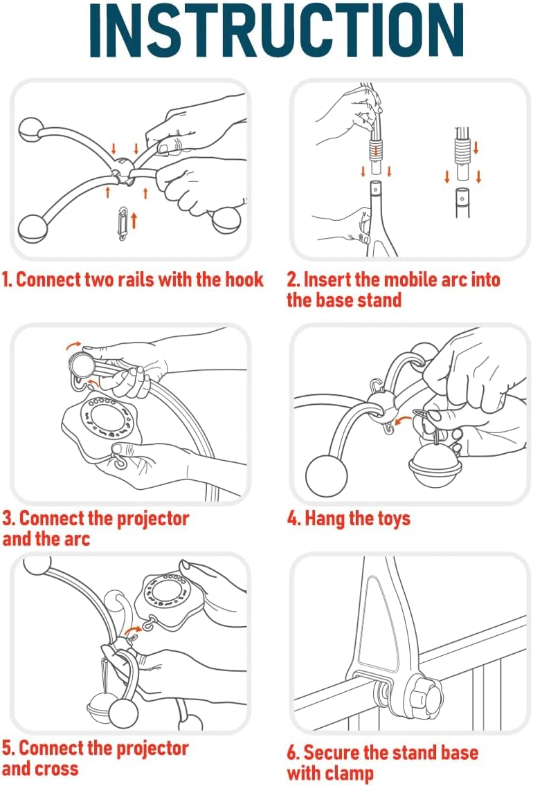 EFFORTLESS INSTALLATION: Entrancing crib mobile features a simple yellow knob that easily attaches to cribs with sturdy rails and spindles. Do not attach to playpens with mesh walls. For the rail thickness: Maximum rail thickness: 10mm(min) to 30mm(max)