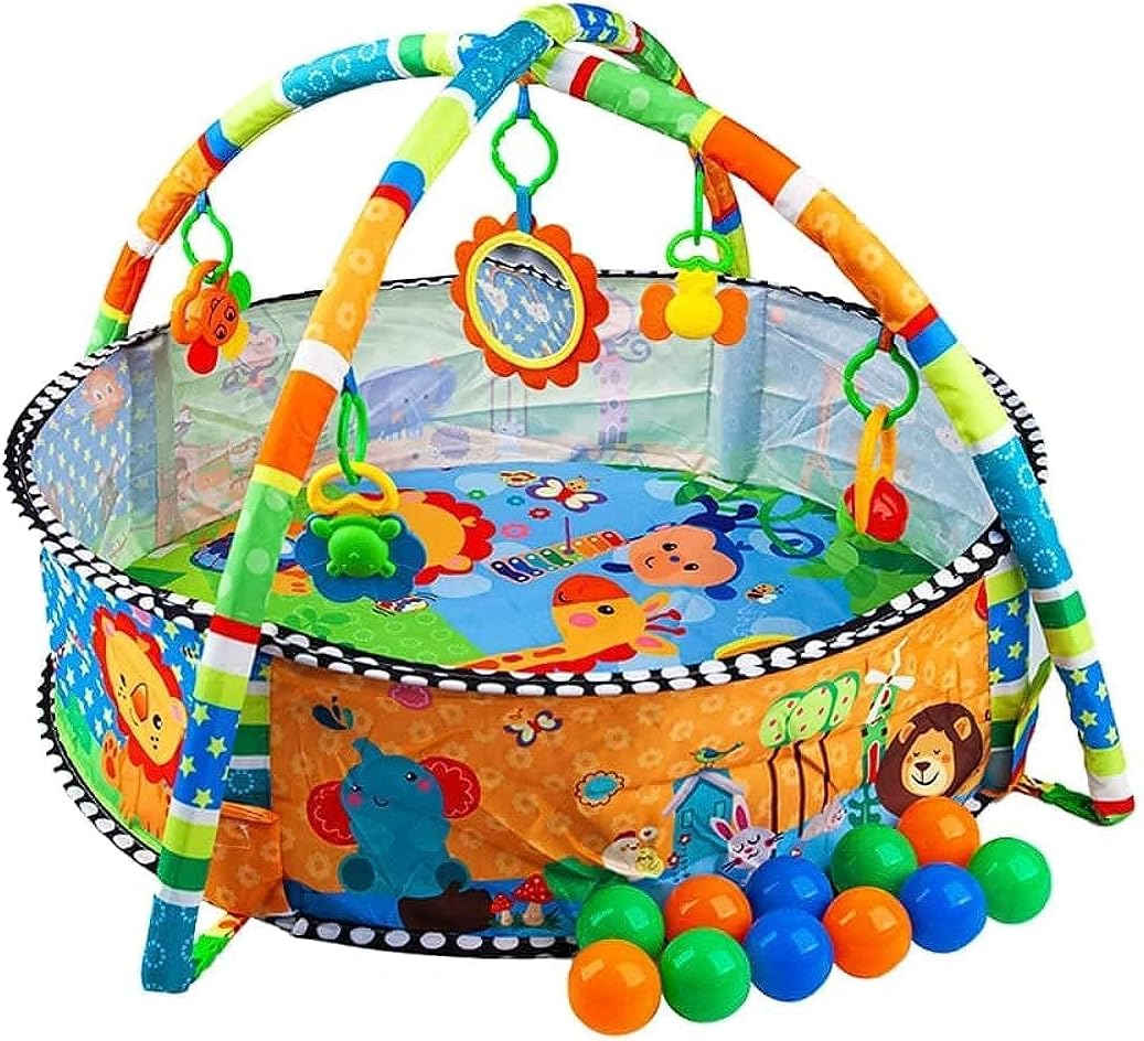 Baby Play Mat & Gym for Infants Boys & Girls - Tummy Time Baby Activity Center & Entertainer with Hanging Toys - Soft Playpen with Balls - Foldable Play Gym - Baby Essential Stuff for Newborn
