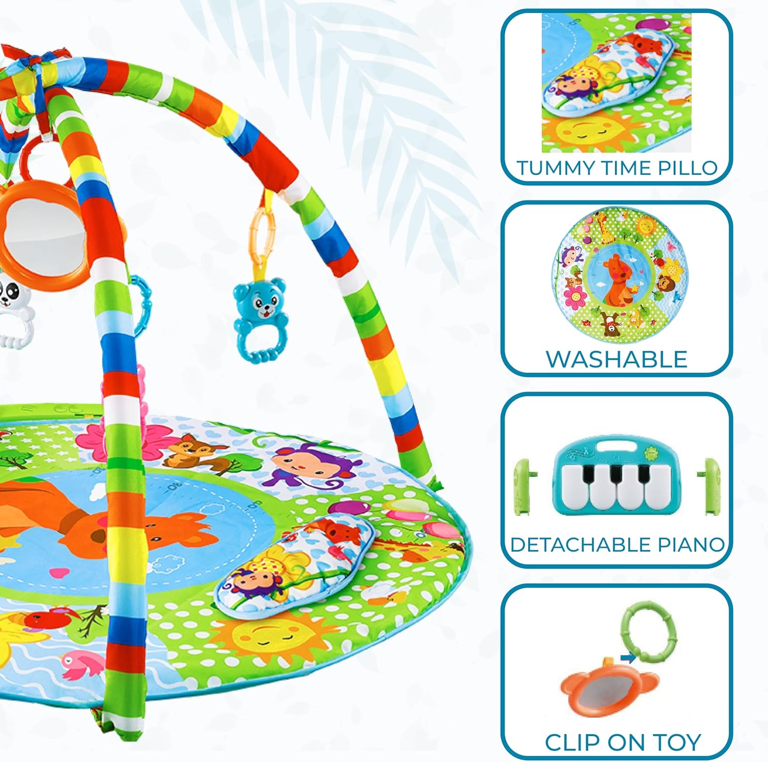 • Engaging Interactive Toys: Our baby play mat features a collection of captivating rattle toys that will keep your little one entertained and promote their motor skill development.